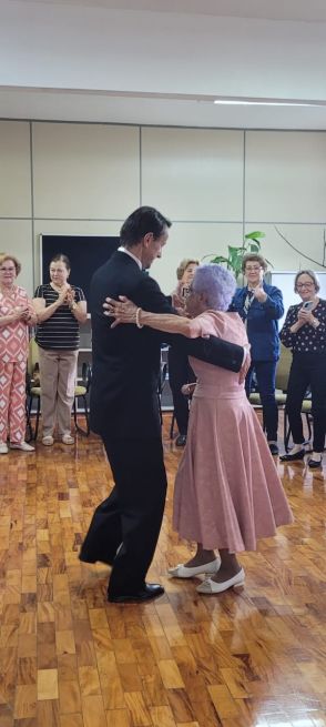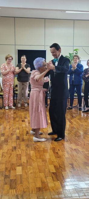 A comemoração foi repleta de memórias compartilhadas, votos de felicidade e dança de salão, a atividade preferida da Dona Irene. Além disso, a equipe de assistência do departamento regional do Sesc-SC conseguiu um vídeo de seu ídolo, o cantor Sidney Magal, parabenizando-a pela data.