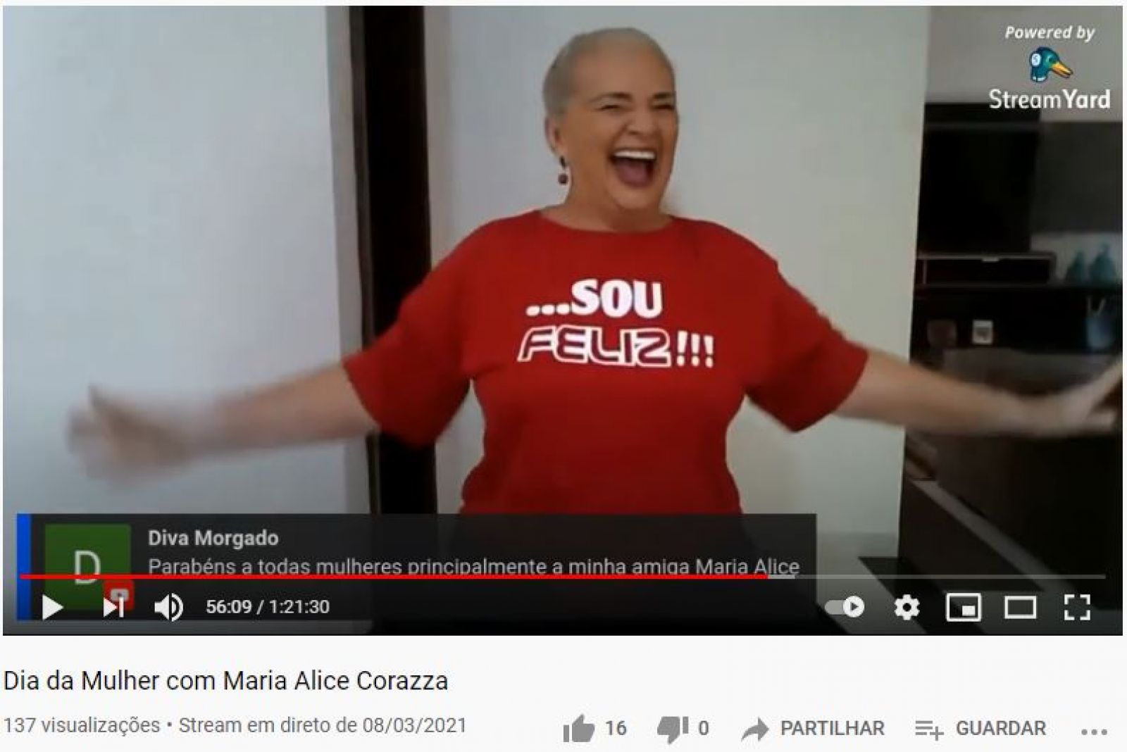 O Sesc Laguna realizou uma live alusiva ao Dia Internacional da Mulher, com o tema “Mulheres, suas fases e o exercício físico”, com a convidada Maria Alice Corazza, professora, educadora física, com especializações em ginástica rítmica, expressão corporal, hidroginástica e atividades físicas para idosos. A ação aconteceu no dia 08.03, foi aberta ao público e com foco nas mulheres 60+, como forma de valorizá-las para continuarem se reinventando, produzindo e se destacando.