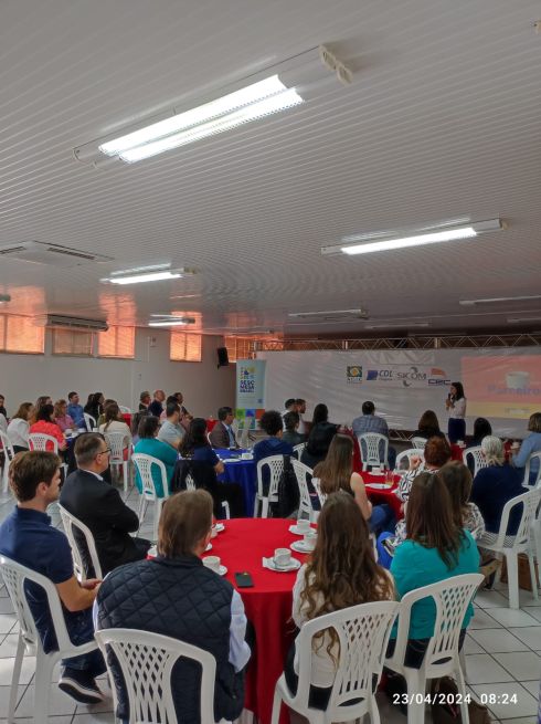 Em Chapecó, o Café com Parceiros foi realizado no Sindicato do Comércio da Região, reunindo os principais representantes do comércio de alimentos local, para uma conversa consciente sobre segurança alimentar e desperdício de alimentos no Brasil, com a nutricionista do programa em Chapecó, Paula Schleguel.