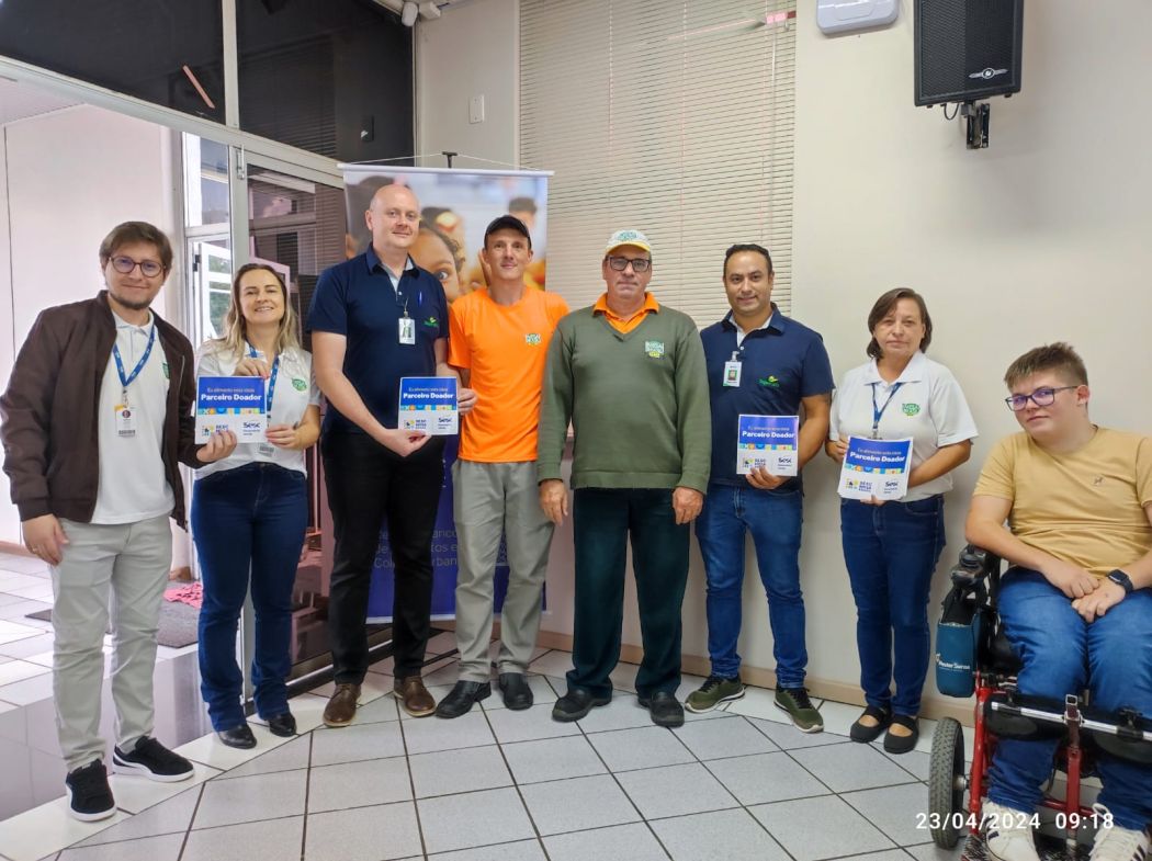 Em Lages, Homenagem aos parceiros: Célio Spagnoli, conselheiro e vice-presidente da Regional do Planalto Serrano entrega homenagem à empresa doadora Perboni.