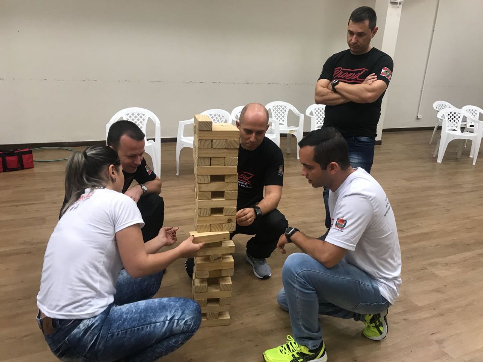 No dia 30/08, 20 Policiais Militares do Programa Educacional de Resistência às Drogas (Proerd) da Grande Florianópolis receberam capacitação de jogos cooperativos e trabalho em equipe, ministrada pelos profissionais da Unidade Sesc Móvel, no Sesc Palhoça. A ação, com duração de quatro horas, contou com um cronograma diversificado, onde os participantes aprenderam como construir um brinquedo com material alternativo e reciclável, conheceram o acervo cognitivo do Sesc Móvel e realizaram atividades em grupo, como jogos recreativos e dinâmicas.