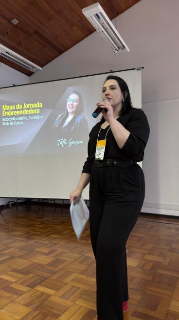 À tarde, a facilitadora Tatti Souza conduziu uma dinâmica de autoconhecimento e visão de futuro, promovendo reflexão e clareza sobre metas pessoais e profissionais. O ponto alto do encontro foi a palestra da renomada Vanessa Tobias, com o tema “O poder de começar pequeno, quando tudo parece pesado demais”, que emocionou o público com mensagens de motivação e resiliência.