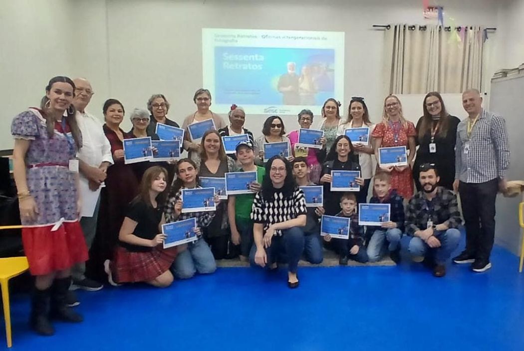O Sesc Santa Catarina realizou, ao longo de 2025, o projeto Sessenta Retratos em 28 Unidades do estado, promovendo oficinas intergeracionais de fotografia que aproximam diferentes gerações por meio da arte e do convívio. A iniciativa teve como objetivo valorizar o envelhecimento ativo, combater o preconceito etário e fortalecer vínculos afetivos entre pessoas idosas, crianças e jovens.