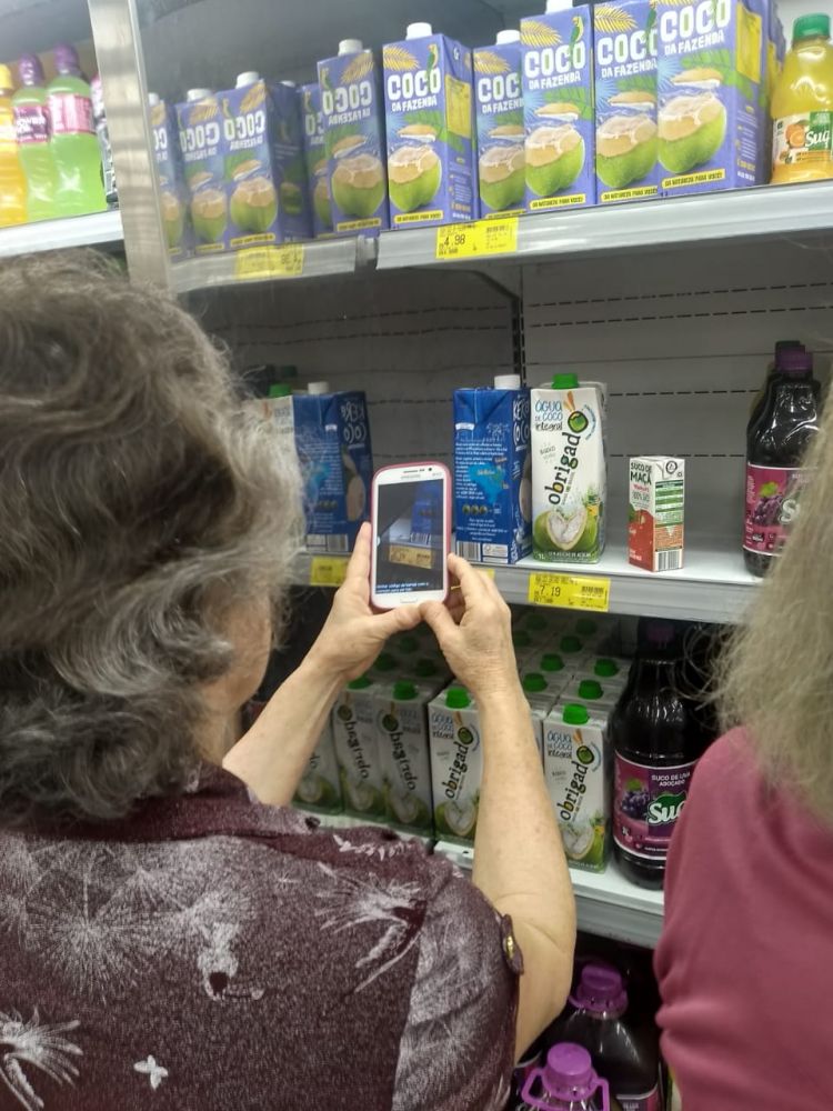 “No encontro de sexta, baixamos o app e fomos no supermercado para conferir os produtos nas prateleiras, com o objetivo de pesquisar alimentos, observando se são saudáveis ou não. Tivemos muitas surpresas desagradáveis e outras nos deixaram satisfeitos, conhecendo realmente o que consumimos. Praticamos ao vivo, por isso se tornou agradável.” Maria da Glória Almeida