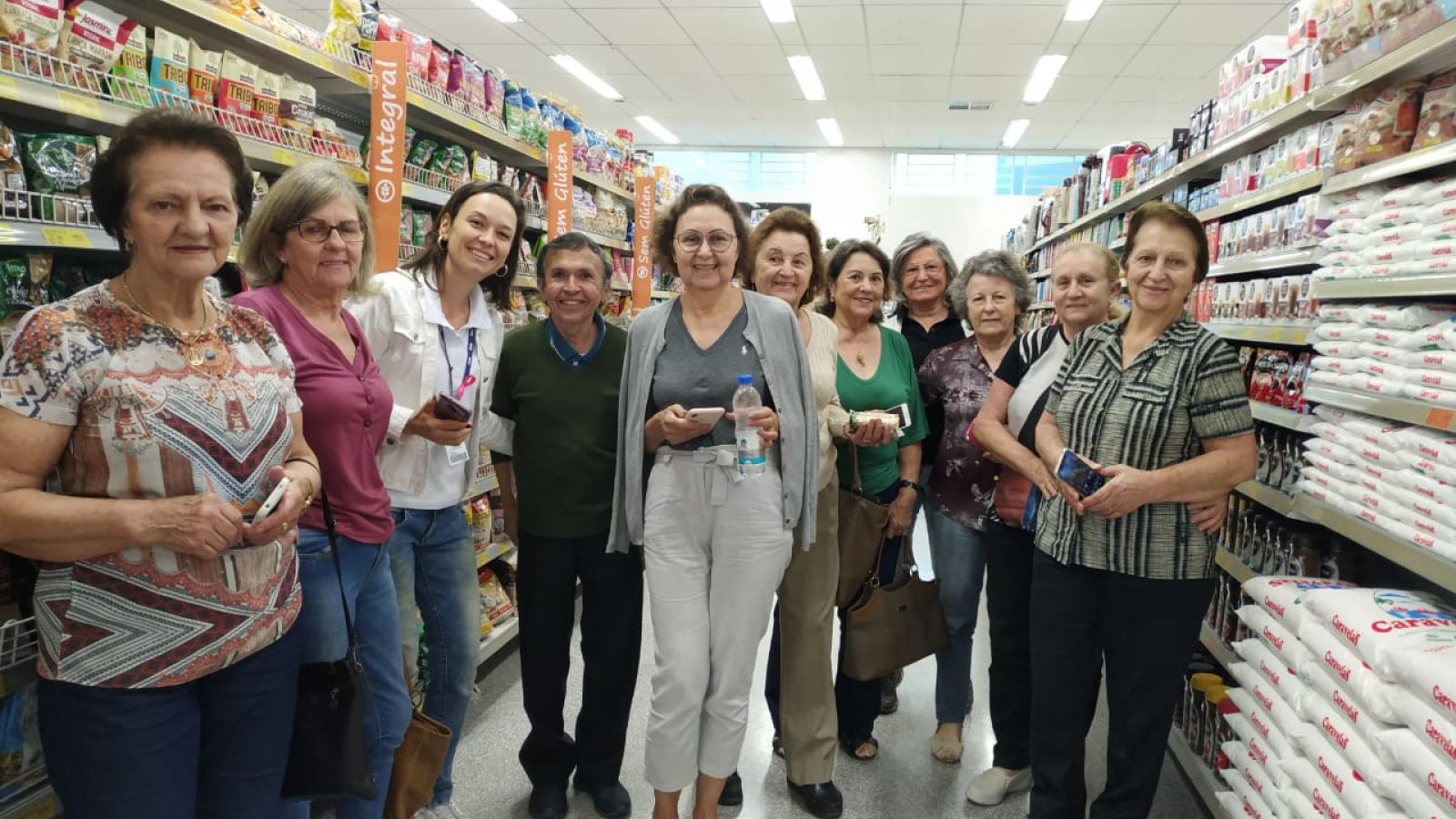 "Realizamos a ação no Dia Mundial da Alimentação, conversamos sobre alimentação saudável e a dificuldade de ler e entender os rótulos dos produtos industrializados. Quando fomos ao supermercado pudemos, na prática, avaliar nutricionalmente os produtos e comparar as marcas. Também falamos que as dietas devem ser individualizadas, nem todos os produtos são bons para todas as pessoas, isto é, mesmo o aplicativo avaliando bem o produto, não quer dizer que pode ser consumido sem restrições". Geisa Carla Franceschini, técnica de Educação em Saúde