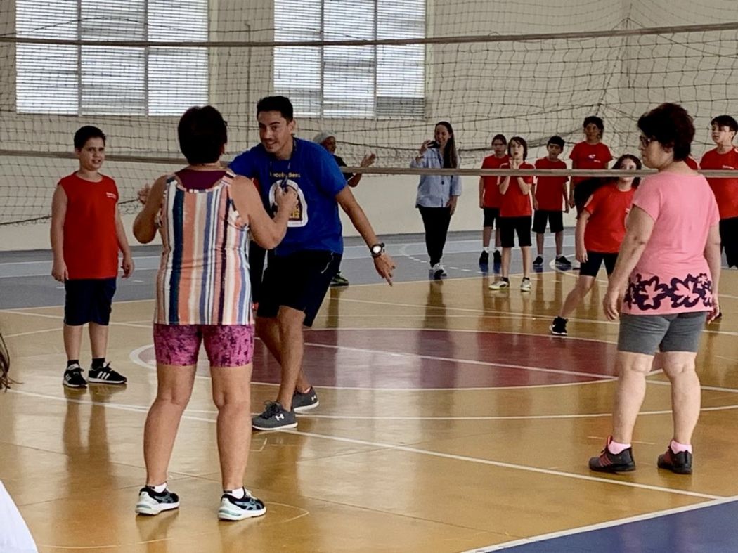 A Unidade Sesc Palhoça realizou atividade intergeracional, a modalidade de vôlei câmbio, envolvendo as áreas de Assistência e de Educação (Ensino fundamental).