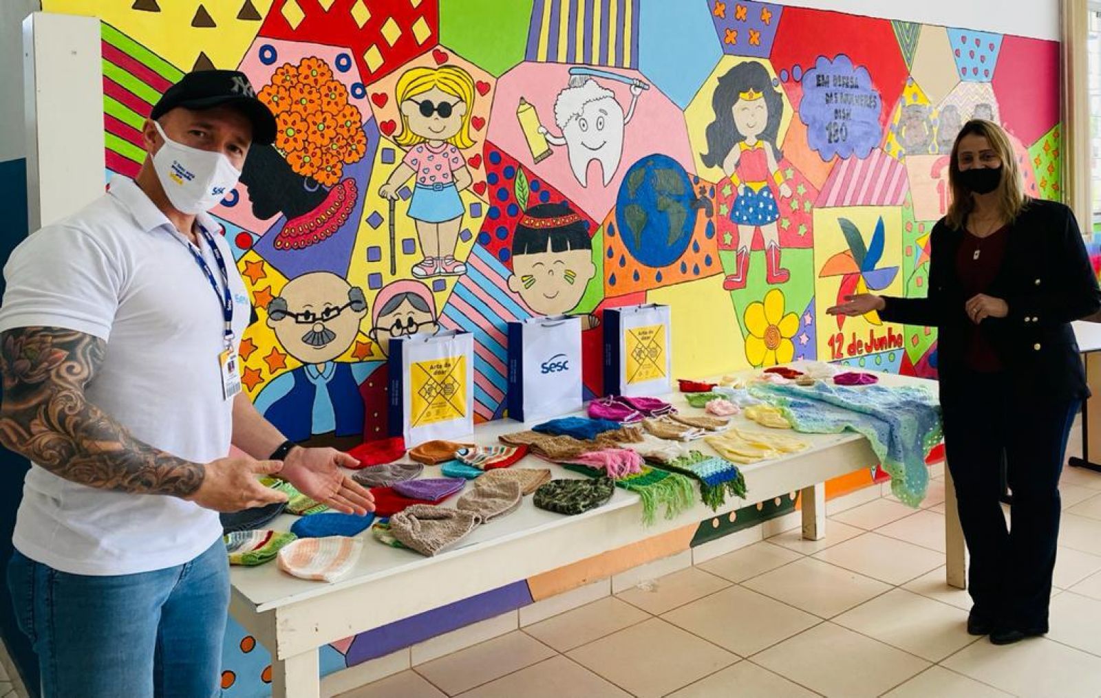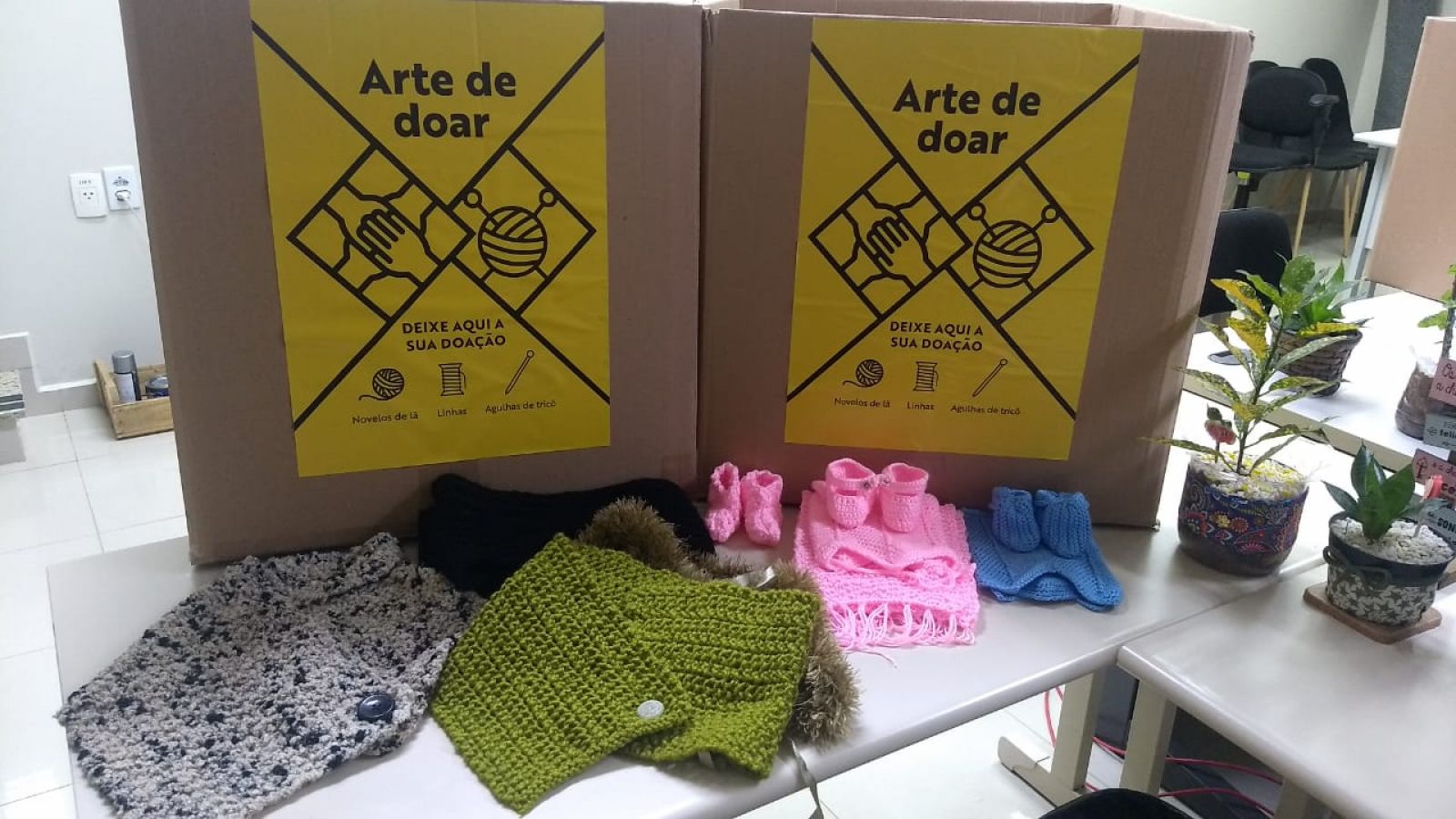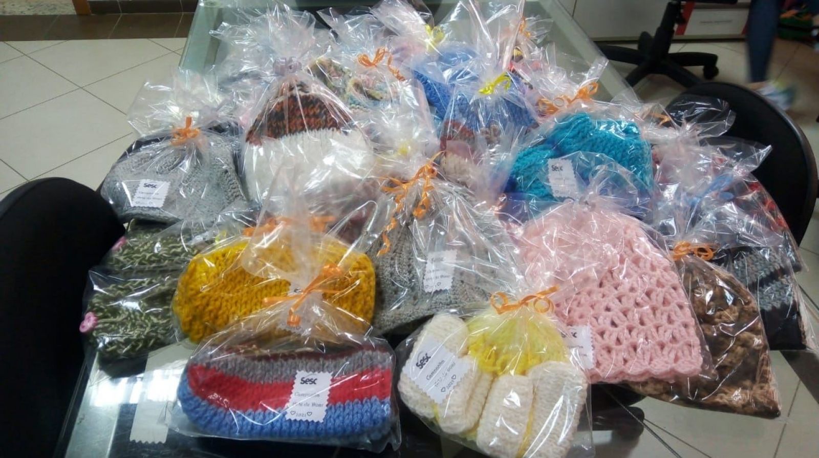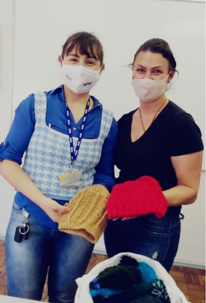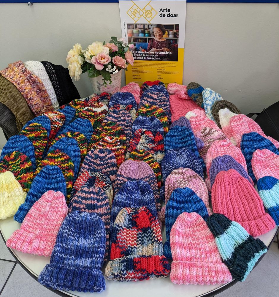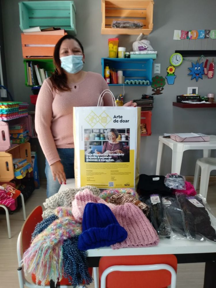 A ação "Arte de Doar" do Sesc-SC mobilizou doadores de materiais e voluntários para a produção e distribuição de peças de lã, como toucas, meias e cachecóis, em prol de pessoas em vulnerabilidade social. Até o encerramento da campanha, no dia 31 de agosto, 140 voluntários produziram 5.581 peças, entregues a 77 instituições e comunidades cadastradas. No total foram arrecadados 3.197 novelos de lã, 116 rolos de linhas e 49 pares de agulhas de tricô.