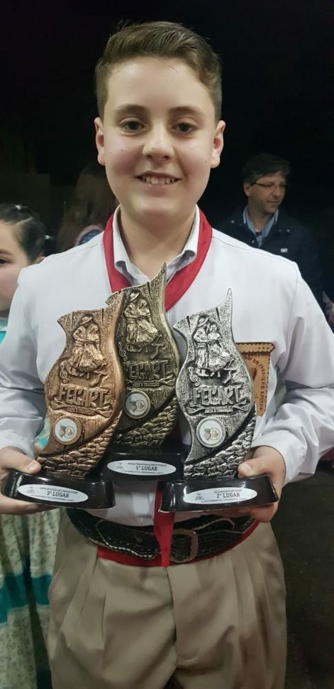 Quatro alunos do Centro Cultural Vidal Ramos – Sesc Lages do Projeto Fábrica de Gaiteiros participaram e foram premiados no XXIII Festival Catarinense de Arte e Tradição (Fecart), na modalidade Gaita Ponto. O evento – considerado o maior festival de folclore do Estado – aconteceu nos dias 14, 15 e 16 de setembro, em Lages foi promovido pelo Movimento Tradicionalista Gaúcho de Santa Catarina (MTG/SC) e reuniu em torno de 2.500 artistas de Santa Catarina, de 22 municípios. “Para nossa alegria foram todos premiados”, relata com orgulho o instrutor André Alano.