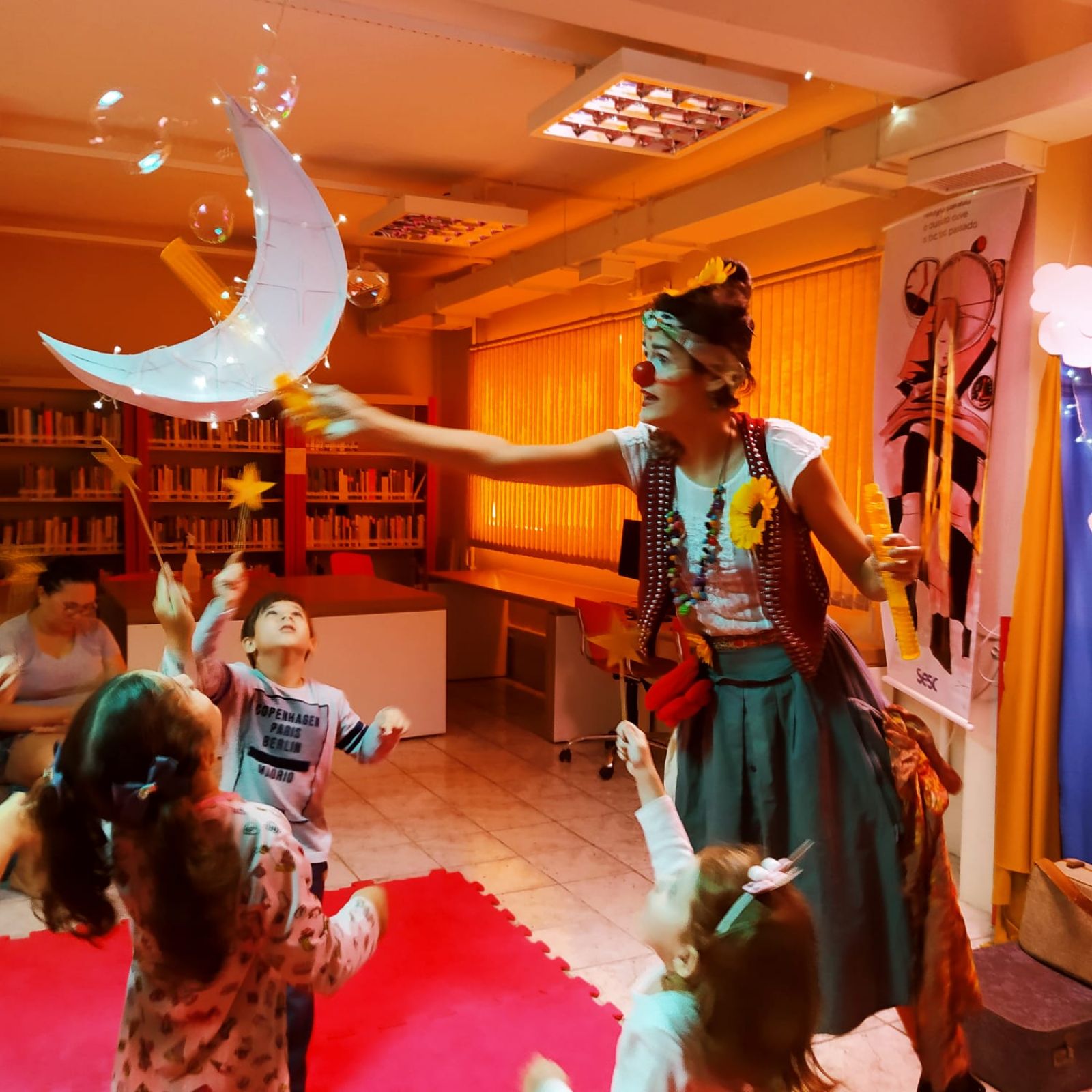 “A minha vivência de assistente de biblioteca do Sesc Araranguá ficou cheia de muito pó de estrela, cultura popular, de ciranda de roda e jogos que você podia sonhar. Realizei a oficina de garrafas calmantes que teve como inspiração o livro 'A menina e o céu', de Léo Cunha. Me emocionei em ver nos olhos das famílias a felicidade de levar um pedaço do céu em suas garrafas, os sorrisos e afeição pelo o espaço", conta a colaboradora Camila de Jesus Souza. O seu depoimento traduz bem como foi o evento pelo Estado.