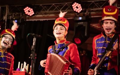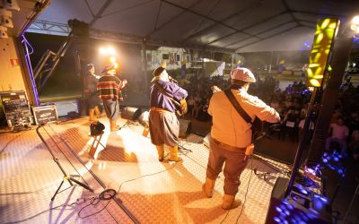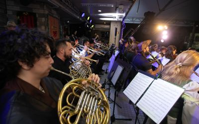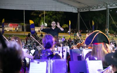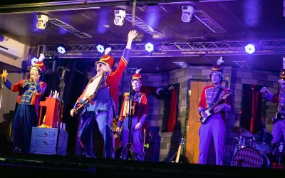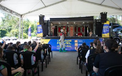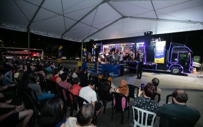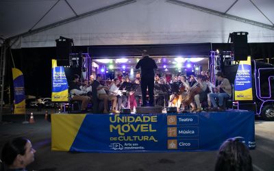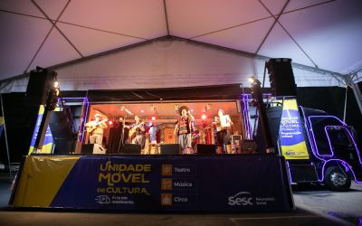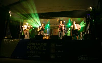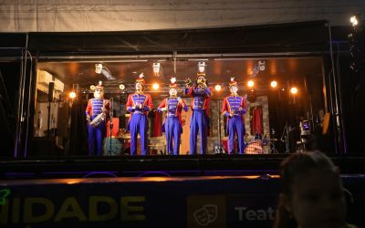 A divertida Orquestra de Brinquedos (RS) encantou o público ao executar músicas utilizando instrumentos de brinquedo. O grupo trouxe ao palco da Unidade Móvel de Cultura um repertório repleto de criatividade, humor e releituras surpreendentes. Cada arranjo revelou uma combinação única de técnica e ludicidade, arrancando risadas, aplausos e olhares curiosos da plateia, que acompanhou a performance com entusiasmo.