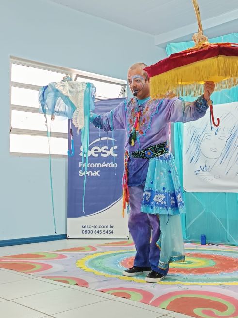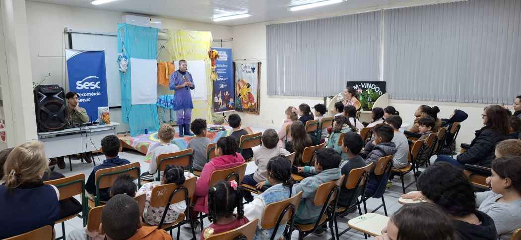 Além dos serviços de biblioteca, o BiblioSesc promove programação cultural nas cidades por onde passa, ampliando o acesso à arte e à literatura por meio de diferentes linguagens artísticas, para além dos livros. Neste primeiro semestre, a atração em destaque foi o espetáculo de contação de histórias “Cidade da Chuva”, apresentado por Humberto Soares, da Pequeninus Cia. de Teatro. Em maio, a montagem percorreu 10 comunidades dos municípios de Mafra e Rio do Sul, onde a biblioteca móvel realiza atendimentos semanais com consulta, empréstimo e mediação de leitura.