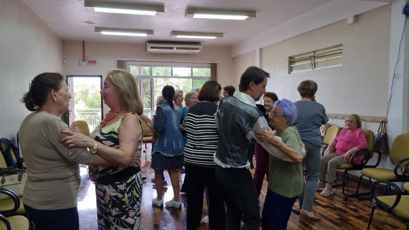 Chegando à sala, todas realizaram o processo de acolhimento e foi relatado que um bailarino muito famoso estava à procura de um novo par e que havia escutado falar sobre uma senhora e que gostaria de tirá-la para uma dança. Dona Irene brincou dizendo que iria pensar, mas logo aceitou. E assim começou a aula de dança para o grupo, com uma valsa do professor de dança juntamente com a aluna mais antiga do TSI, Dona Irene.
