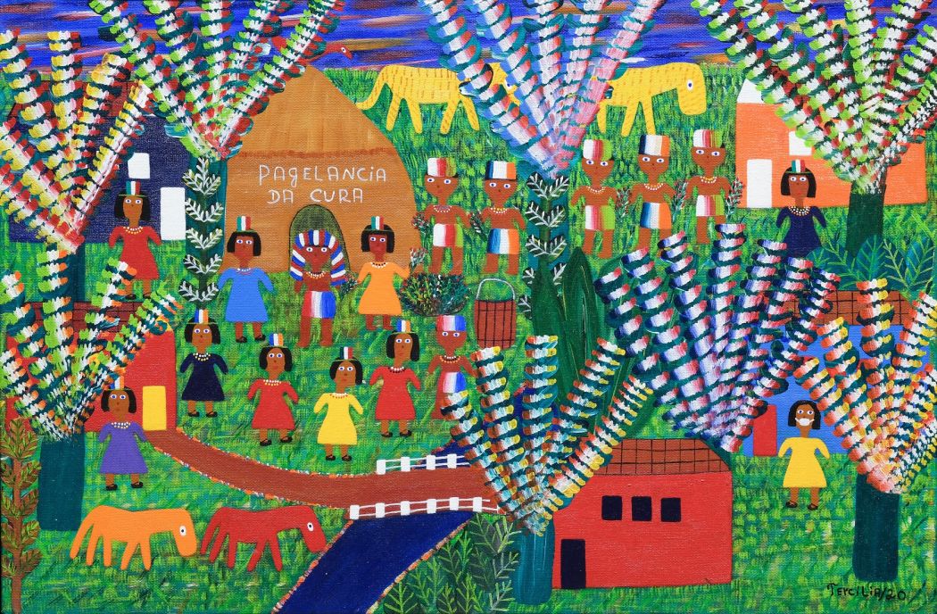 Com curadoria de Clarissa Diniz e Deise Oliveira, a mostra estreou em Itajaí, em 2024, e segue agora para Concórdia, oferecendo mais uma oportunidade de explorar a trajetória artística de Tercília, iniciada há mais de trinta anos, com um sonho transformador. Em sua visão, ela viu um portal luminoso “bem faiscante e colorido, do qual mulheres entravam e saiam, comentando os erros praticados pelos humanos”. Ao notar sua presença naquela paisagem cintilante, Jesus Cristo se aproximou, revelou algumas obras de arte e declarou que ela também deveria pintar.