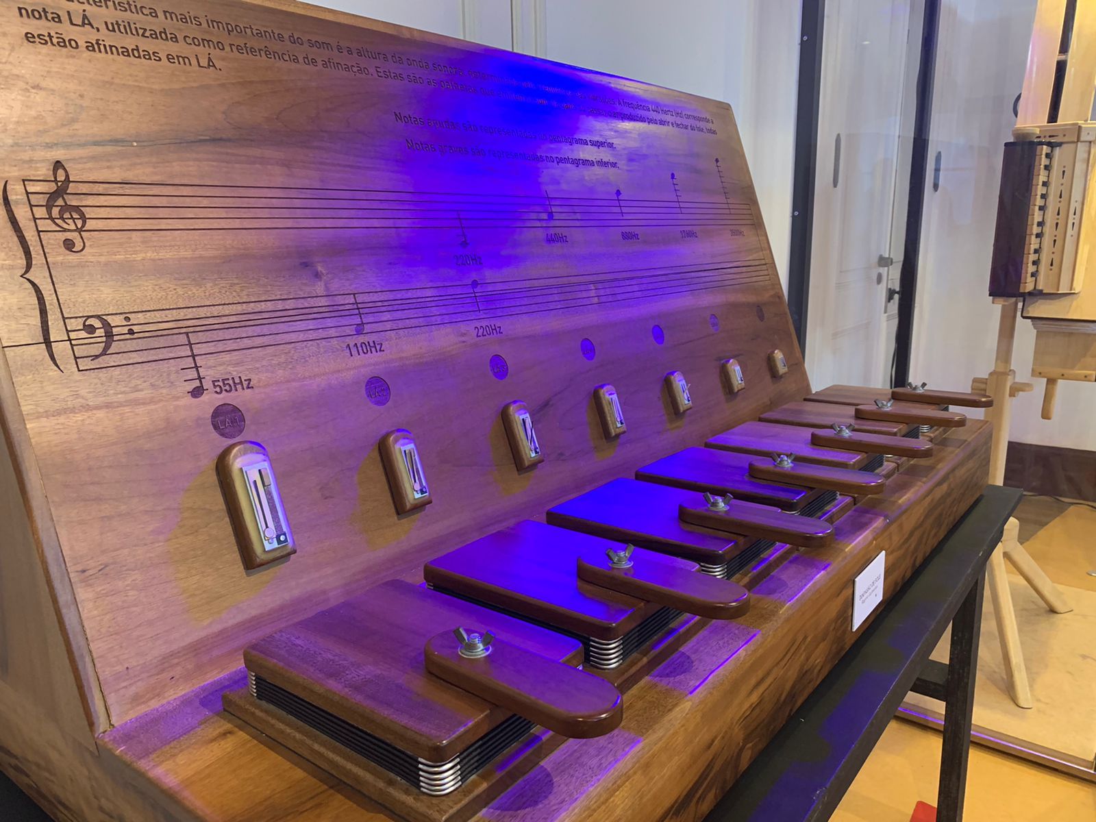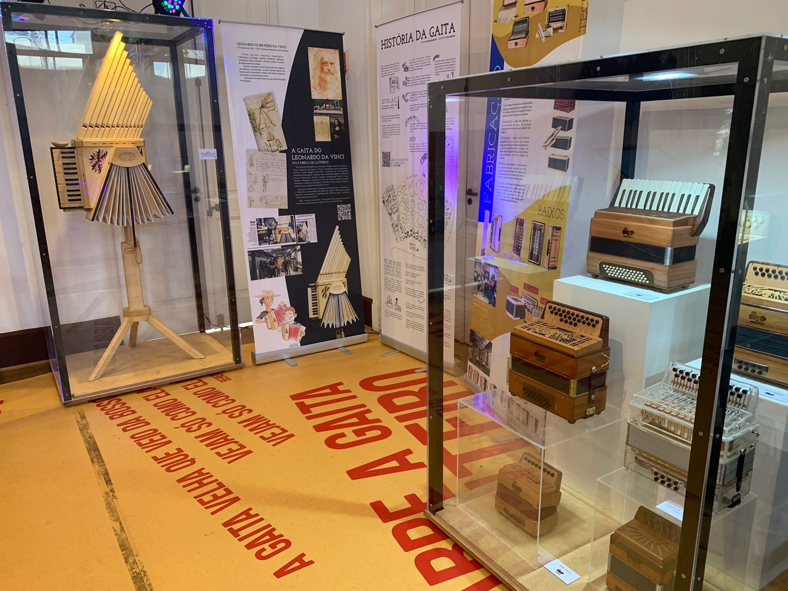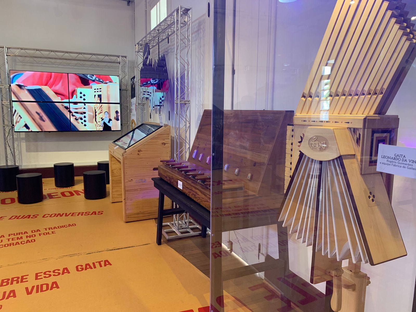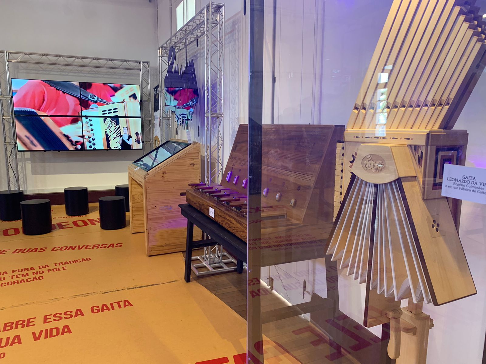 Música, tradição, sustentabilidade, experiência e pertencimento são apresentados em um percurso que mostra as diversas etapas da fabricação da gaita, além de ambientes de convivência e experimentação. Um quarteto de bonecos de madeira articulados, recepcionam os visitantes que encontram diferentes tipos de acordeon, um simulador de gaita, uma gaita com os botões em braile e muito mais.