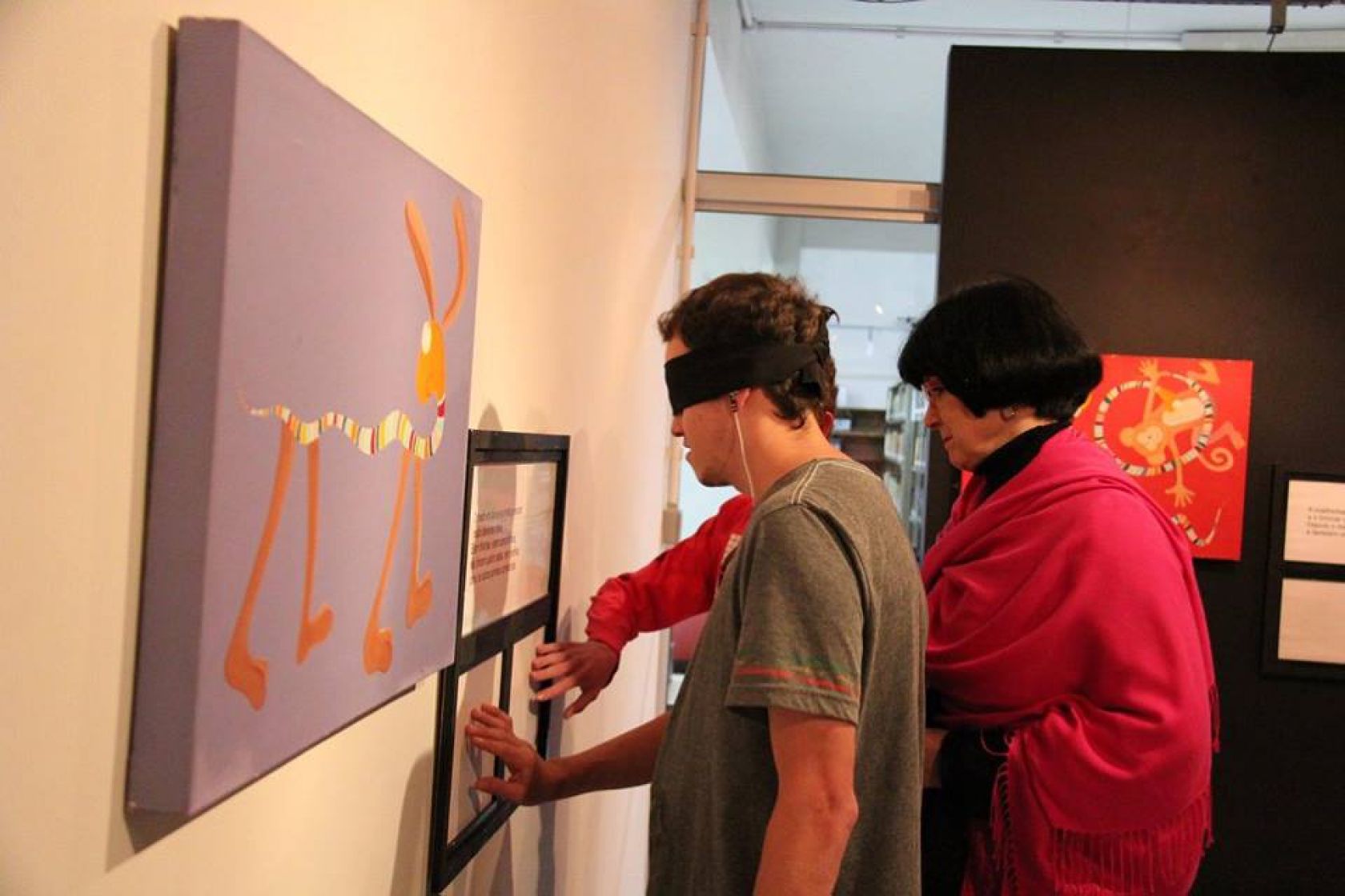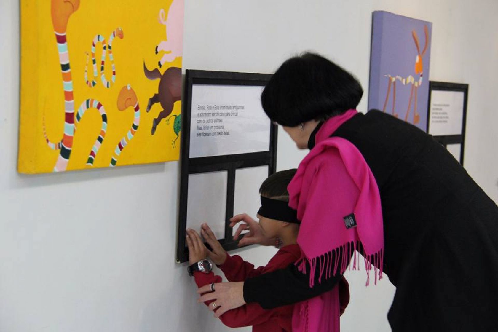 de desenho para quem tem deficiência visual. Para apreciar a mostra, o público