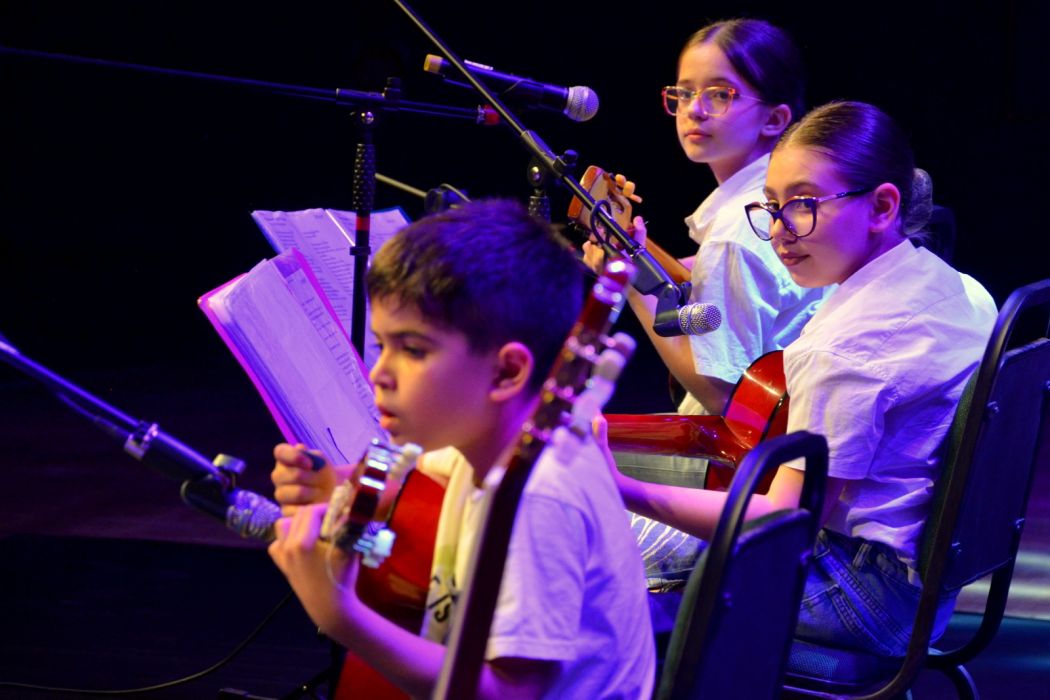 A programação iniciou com as turmas de Violão Infantojuvenil e de Musicalização Infantil, conduzidas pelo instrutor Gustavo Borges Duarte, que apresentaram um repertório variado com músicas populares e clássicos da música brasileira, recebendo aplausos calorosos do público.