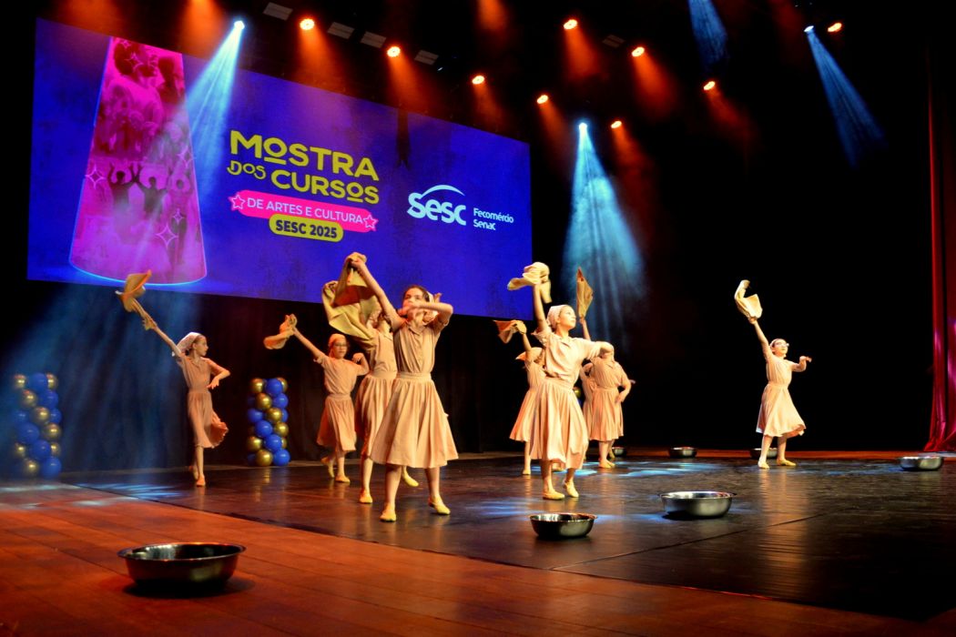 O Sesc Criciúma realizou no dia 13 de novembro, no Teatro Elias Angeloni, a sua Mostra dos Cursos de Artes e Cultura, reunindo alunos, familiares e comunidade para prestigiar os resultados do trabalho desenvolvido ao longo do ano. O evento proporcionou apresentações que evidenciaram o aprendizado, a criatividade e a dedicação dos participantes, celebrando o percurso até o momento.