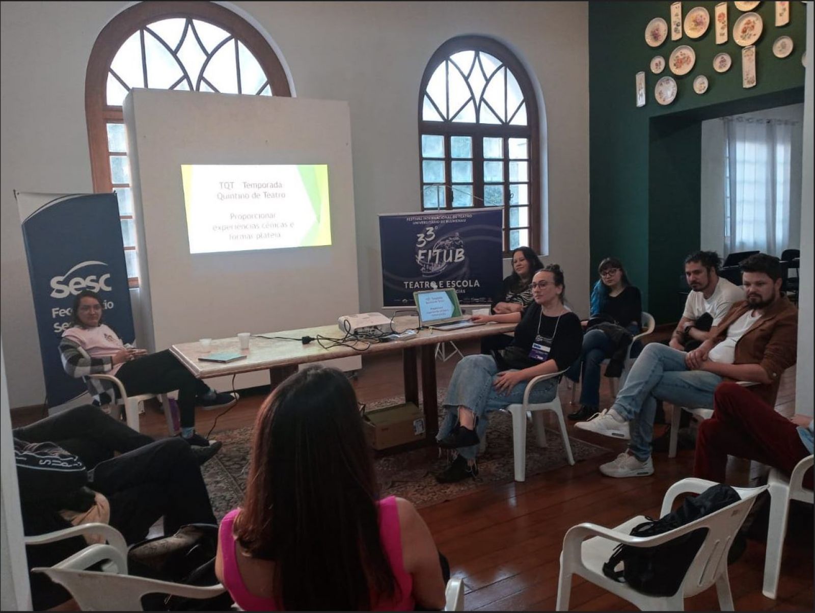O Sesc é parceiro correalizador da ação Teatro e Escola há 8 anos unindo forças, para manter a qualidade do que é ofertado, oportunizando também oficinas e encontros entre pesquisadores, educadores e o público adulto, que atua junto à comunidade escolar buscando refletir sobre importância e espaço das artes cênicas intra e extramuros da escola. Para Sabrina Moura, pesquisadora e coordenadora da ação Teatro e Escola “em especial as ações que incluem a ida de estudantes aos espaços culturais, são de extrema importância na relação com a arte teatral, pois criam vínculos para além dos muros e possibilitam uma outra experiência estética ressignificando o olhar para as produções artísticas e o repertório do espectador”, destaca.
