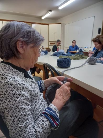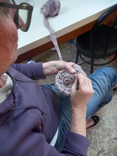 “As oficinas oportunizam ao participante aprender a trama (técnica de crochê) através do aproveitamento de resíduo têxtil da região. Os encontros têm foco no trabalho manual para desenvolver e tramar objetos utilitários carregados de aspectos culturais e sustentáveis” relata Monica.