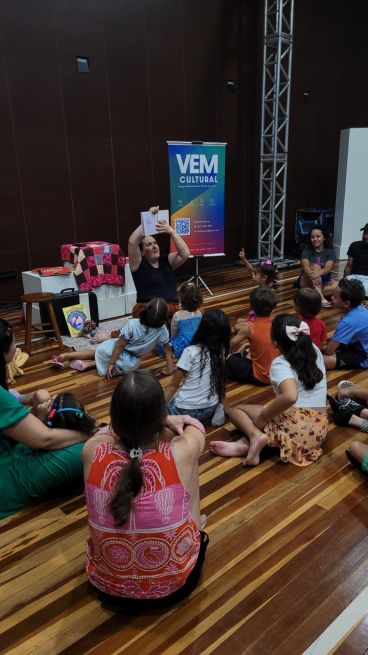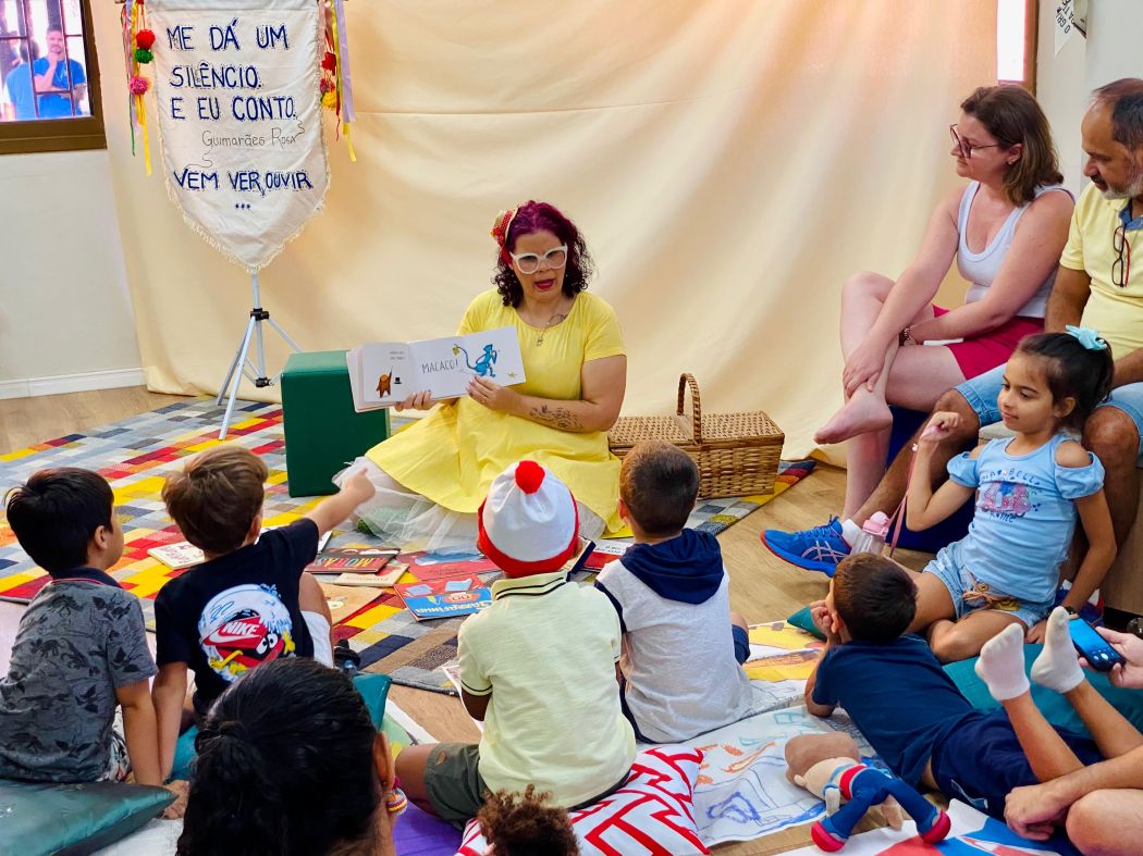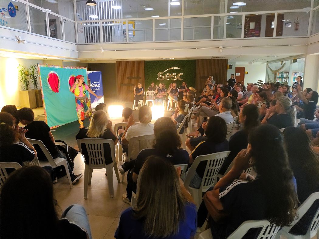 Na Unidade Sesc Estreito, por exemplo, a artista Laís Goes encantou o público com a contação do livro "E foi assim que eu e a escuridão ficamos amigas", de Emicida, abordando temas como medo e coragem de maneira sensível e poética.