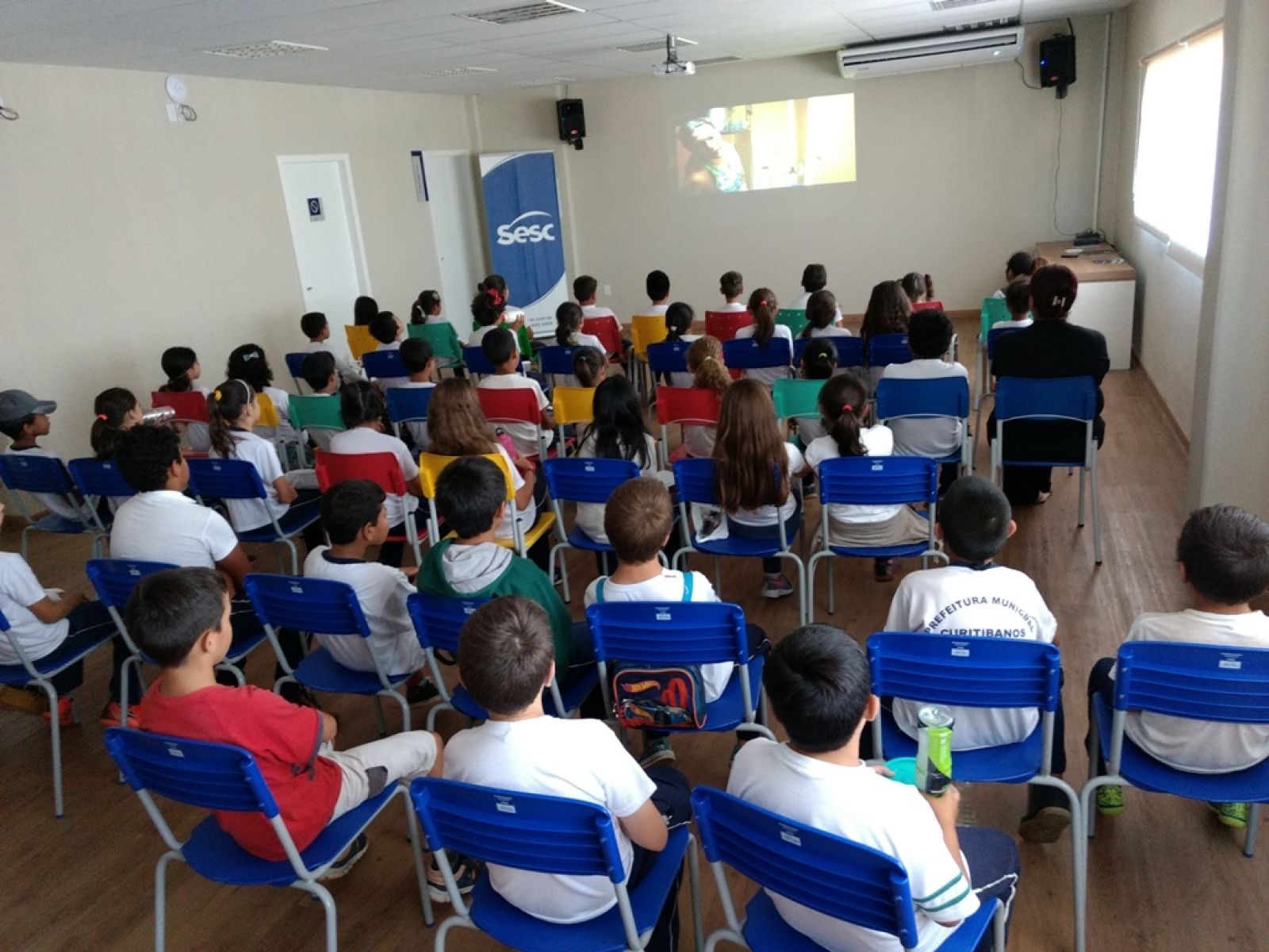 disponibiliza o transporte até o Sesc, 315 crianças do quinto ano da rede
