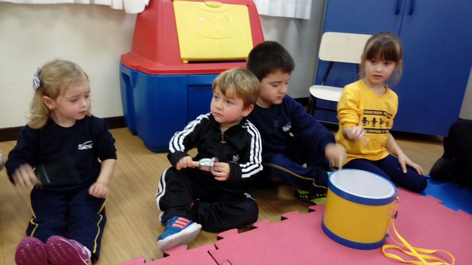 As crianças maravilhadas com as melodias apresentadas, cantaram, dançaram e envolveram-se de maneira significativa na atividade. A professora Lidiane oportunizou que as demais turmas da Educação Infantil participassem do momento e, assim, a aluna Antônia, de 5 anos, mostrou suas habilidades com o violino. Houve também o momento de manipulação de instrumentos sonoros (tambores, pratos, chocalhos...) em que se formou uma bandinha seguindo ritmos orientados, assim como a execução de várias cantigas. Foi uma tarde maravilhosa, de muitas aprendizagens e enriquecimento musical para as crianças.