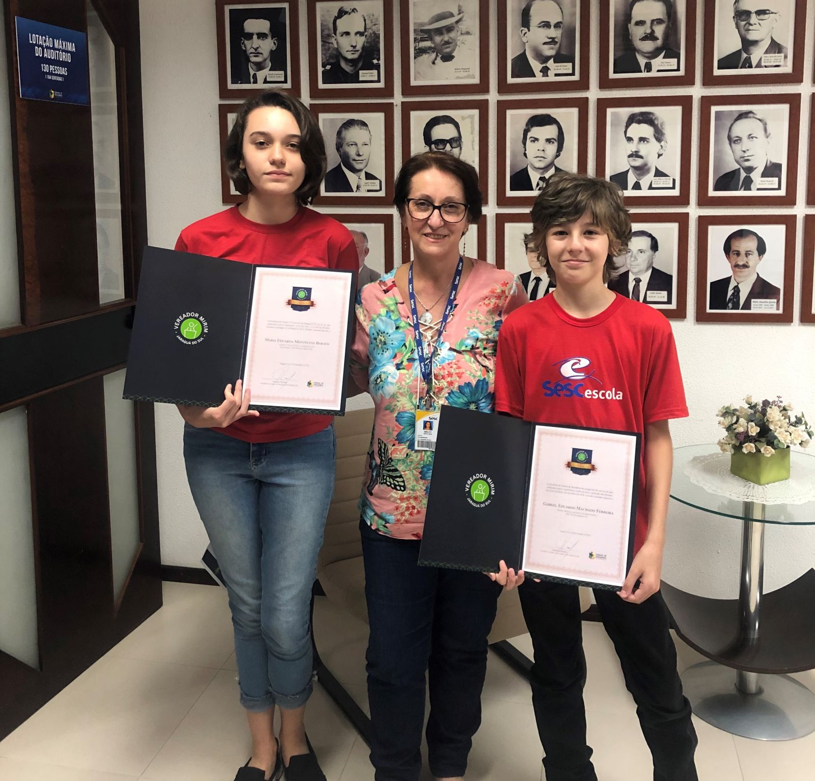 Os alunos da Escola Sesc Jaraguá do Sul, Gabriel Eduardo Machado e Maria Eduarda Montecino Barato, do Ensino Fundamental II, foram eleitos pelos seus colegas para representá-los no Programa Vereador Mirim. Gabriel, do 7º ano, exerce a função de vereador mirim e Maria Eduarda, do 8º ano, é suplente mirim em sua segunda participação.