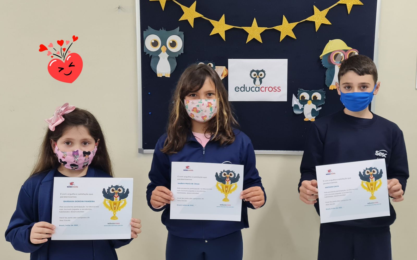 Confira abaixo o registro da entrega do certificado de participação para os alunos destaque da Escola Sesc Xanxerê na plataforma Educacross: