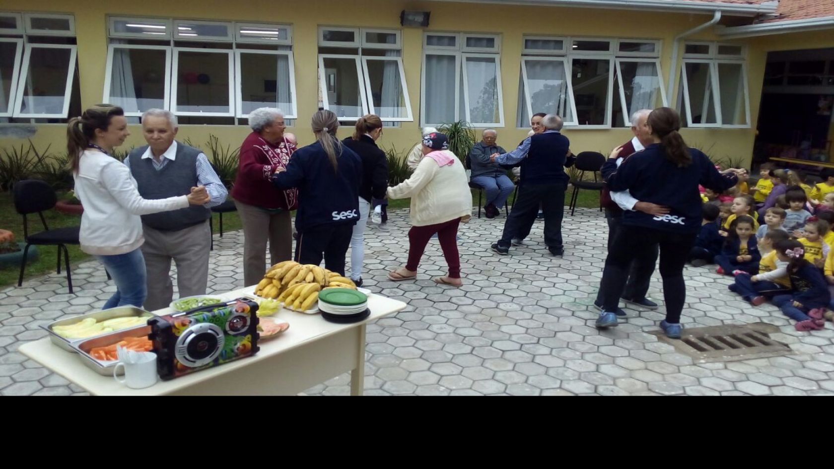 Na tarde do dia 16 de agosto, as crianças da Escola Sesc em Tijucas sentiram de fato a energia que contagia o verdadeiro sentido da vida. Eles receberam os Idosos do Lar Santa Maria da Paz com sorrisos contagiantes, músicas e brincadeiras. A equipe pedagógica em sua rotina diária, trabalhou com as crianças o respeito, a empatia e a solidariedade.