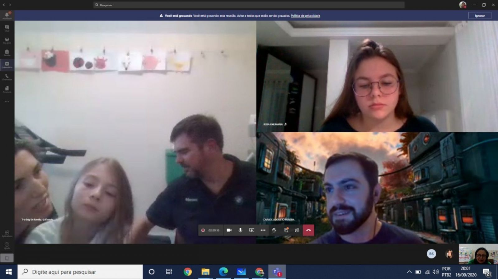 Colocar os estudantes de Idiomas do Sesc Joinville em contato com outras pessoas, que falam inglês com velocidades de fala diferentes daquelas com que estão acostumados (como a do professor e dos colegas) foi o objetivo da teacher Ivone Alves, ao propor uma entrevista on-line, pela plataforma Microsoft Teams com uma família brasileira, que vive nos Estados Unidos há mais de 12 anos.