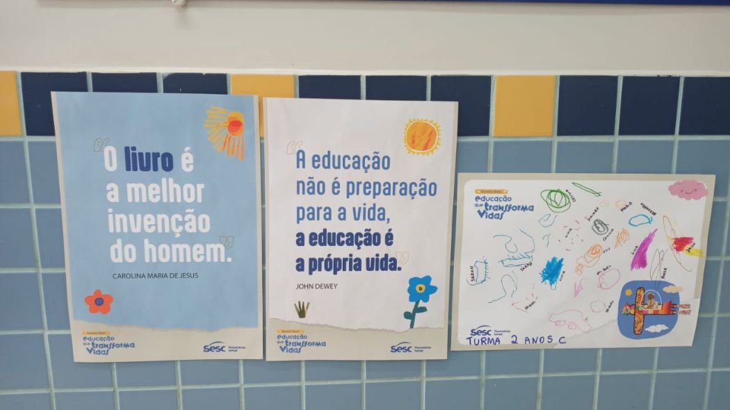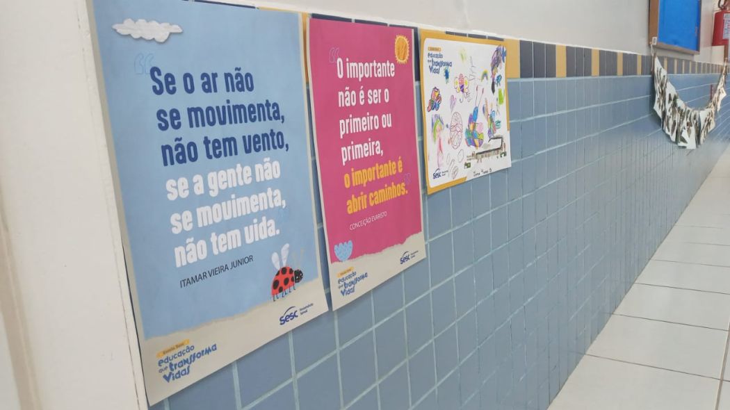 As escolas da Rede Sesc de Educação receberam uma seleção especial de cartazes cuidadosamente escolhidos para decorar e enriquecer seus espaços. Com frases inspiradoras sobre empatia, educação e qualidade das relações sociais, os cartazes têm como objetivo fomentar o respeito e o bem-estar de todos os frequentadores do Sesc.