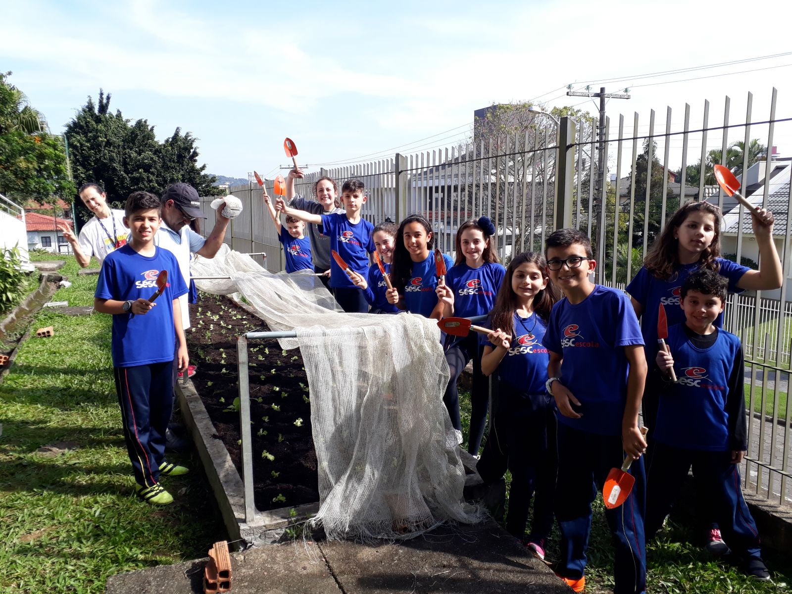 Colocar a mão na terra, plantar, cuidar e colher hortaliças, frutas, temperos e ervas medicinais, são algumas práticas do projeto Hortas Escolares, desenvolvido nas Escolas Sesc Santa Catarina. Alunos da Educação Infantil, Ensino Fundamental e Projeto Habilidades de Estudo (contraturno) têm acesso a um verdadeiro laboratório ao ar livre, onde vivenciam o ensino através da experiência prática e complementam os conhecimentos da sala de aula.