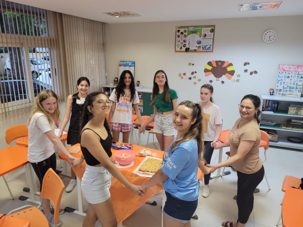 As atividades permearam todas as modalidades e níveis do Idioma. Os alunos tiveram a oportunidade de conhecer o significado do Thanksgiving, por meio de atividades, jogos e lanches coletivos, as quais remeteram a questão da partilha e gratidão. Puderam esboçar e refletir, também, com as mesmas, pelo que são gratos.
