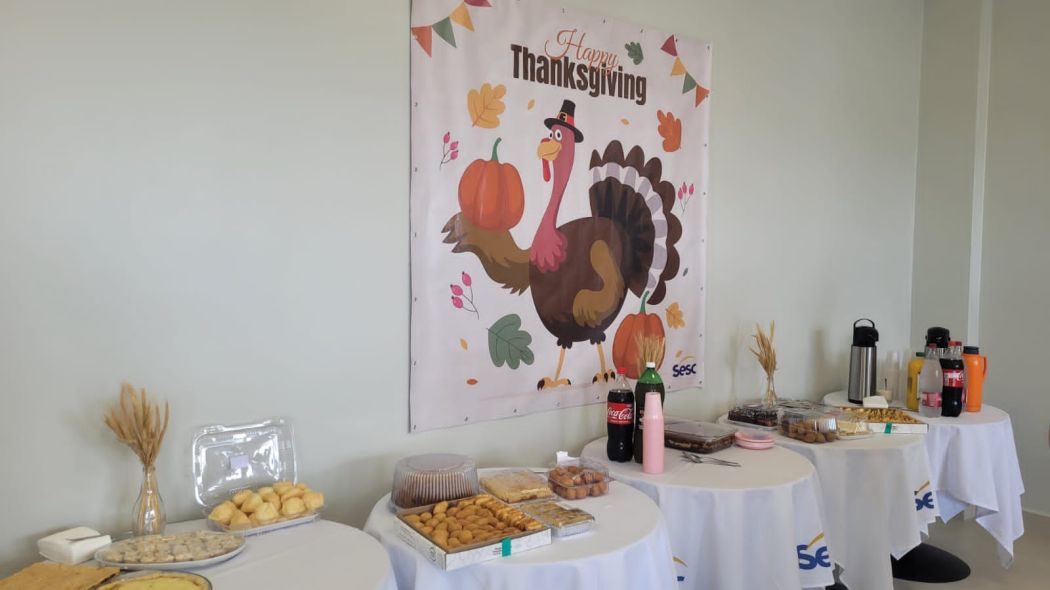 "It's very important keeping celebrating our ancient habits and culture. It's so beautiful gathering with the most important people in our lives and say the things we are grateful for. (É muito importante manter a celebração dos hábitos e a cultura dos nossos ancestrais.É muito bonito se reunir com as pessoas mais importantes de nossas vidas e falar as coisas pelas quais somos gratos", ressalta a instrutora de Inglês do Sesc Blumenau, Ana Carolina.