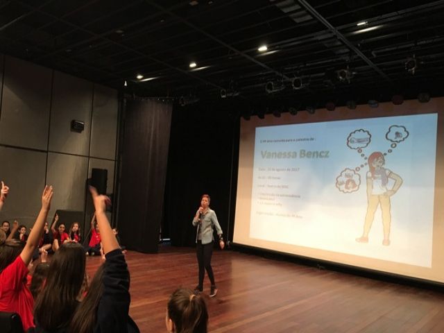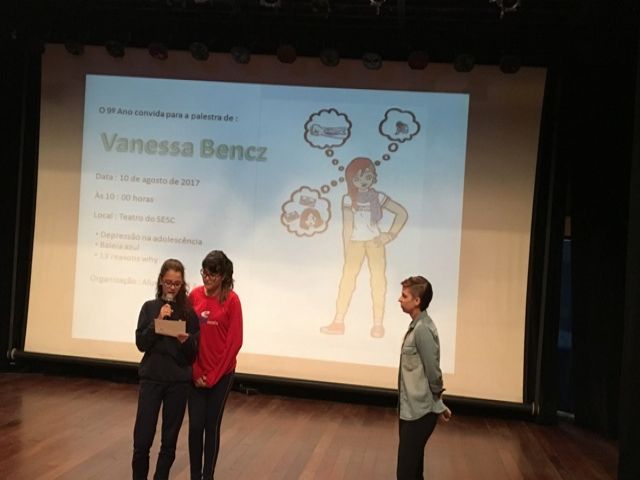 No dia 10 de agosto, a turma do 9º ano da Escola Sesc em Joinville, organizou uma palestra com a escritora Vanessa Bencz. A iniciativa fez parte do projeto Insights e teve como objetivo dar mais autonomia aos alunos e oportunizar aos mesmos demonstrar outras habilidades além classe.