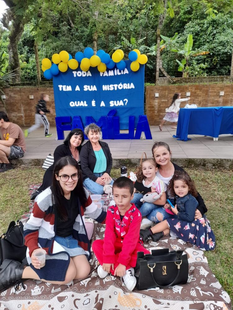 A família da Renata e da Lorena, das turmas de 2/3 anos e 5 anos vespertino, também esteve presente e a mãe Renata enalteceu a importância do evento: “o Dia da Família no Sesc foi muito especial. Como pais estávamos ansiosos para participar das atividades preparadas pela equipe do Sesc, e nossas filhas muito felizes em estarmos juntos na escola. Foi possível participar com elas das atividades desenvolvidas, na preparação do copinho para colocar a plantinha, brincar com bolha de sabão, correr no campo. Receber um coração feito de massinha da nossa filha mais nova encheu o coração de amor. Foram momentos de dedicação exclusiva as atividades com elas, um prazer estar em contato também com a equipe da escola, com certeza foi muito especial e importante para fortalecer o laço da família".