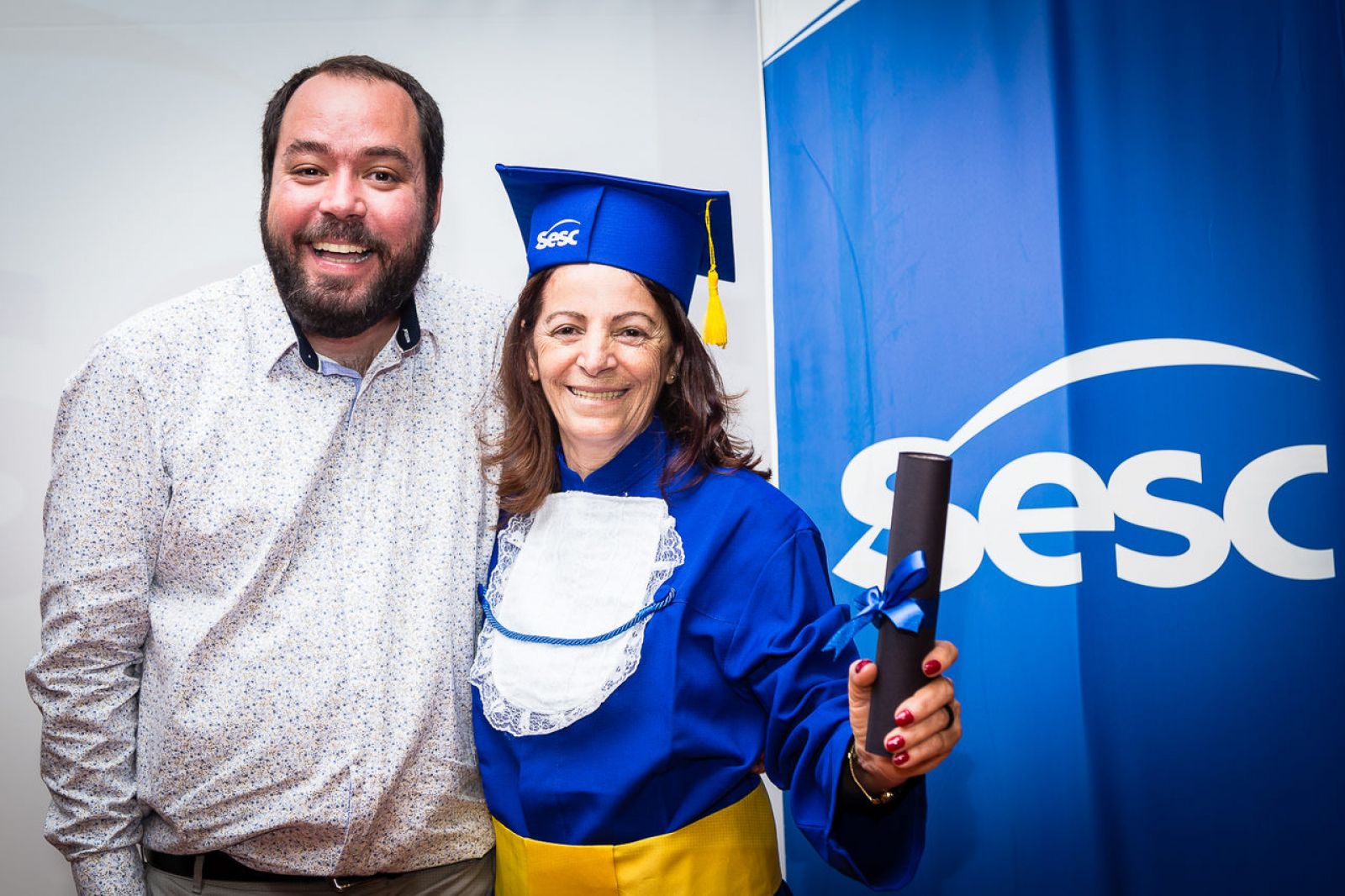 No Sesc eu não saía da sala com dúvida e não aprendi só matérias, tinha ética e outras coisas para levar para vida, como se colocar no lugar do outro. A qualidade dos professores é maravilhosa. Tive muito incentivo do filho e hoje o estudo melhorou muito minha vida, fiquei mais dinâmica para conversar com as pessoas, com os amigos do meu filho e nora, tenho assunto. E agora posso fazer qualquer curso. Estou em dúvida entre Secretariado, Letras - Alemão ou Gestão de Pessoas”, fala agradecida.