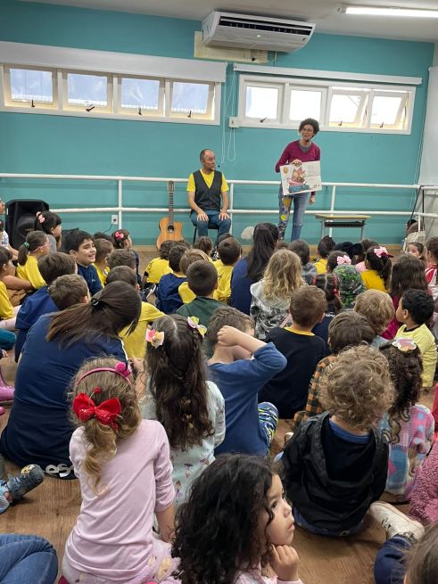 Para enriquecer o repertório literário e cultural, o espetáculo "Ninho de Mafagafos", da Cia Mafagafos, encantou a todos. A performance de Aline Maciel e Sig Schaitel trouxe livros interativos, histórias, músicas e brincadeiras que ganharam vida, alimentando o imaginário e promovendo o prazer pela leitura de forma lúdica.