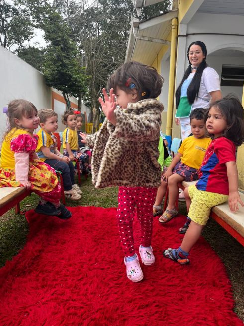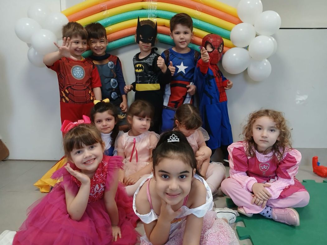 Outro destaque foi o "Dia da Fantasia de Casa", onde cada criança pôde compartilhar com os amigos seu personagem favorito, reforçando o valor da expressão individual e do imaginário infantil.