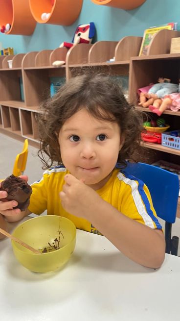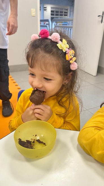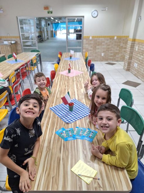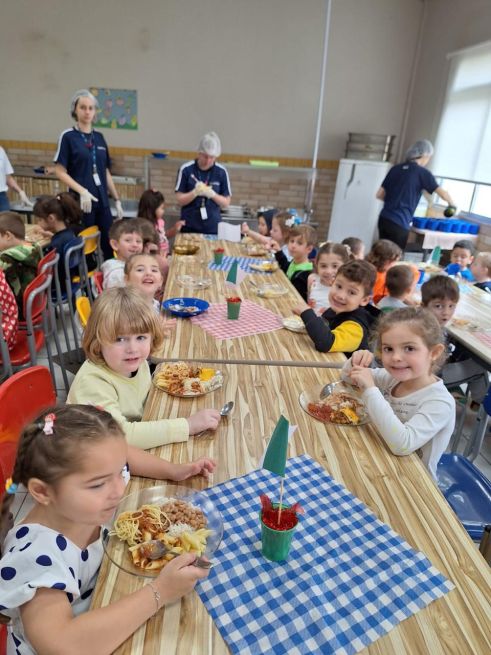 As turmas em turno integral também participaram de um almoço temático com comidas típicas italianas, promovendo o conhecimento de novos hábitos, tradições e a diversidade cultural.