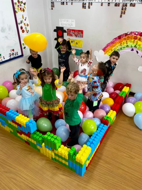 A Semana da Criança em São Bento do Sul foi marcada por atividades lúdicas e interativas, criando espaços que estimulavam a curiosidade e a diversão. Entre os destaques, estavam a piscina de balões, a sala de sombras e luzes, e o espaço das caixas, onde as crianças puderam explorar diferentes sensações, texturas e formas de brincar, fortalecendo o aprendizado por meio da experimentação.