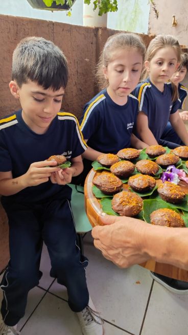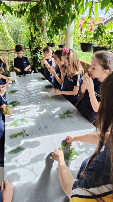 Para completar a experiência, os pequenos participaram de uma oficina de chás. Eles puderam sentir a textura das ervas, apreciar os aromas e degustar os diferentes tipos de chá, aprofundando a conexão entre teoria e prática.