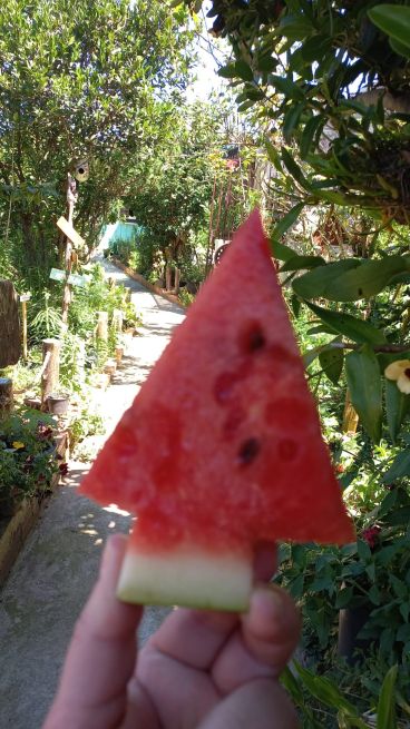 Os estudantes exploraram o espaço, observaram diferentes plantas — desde ervas aromáticas até flores e frutos — e ficaram encantados com as borboletas e a biodiversidade local.