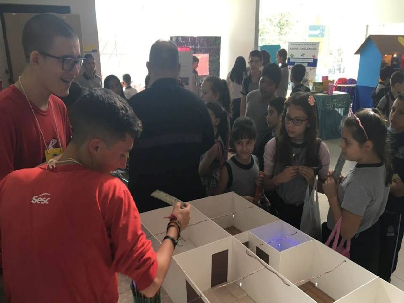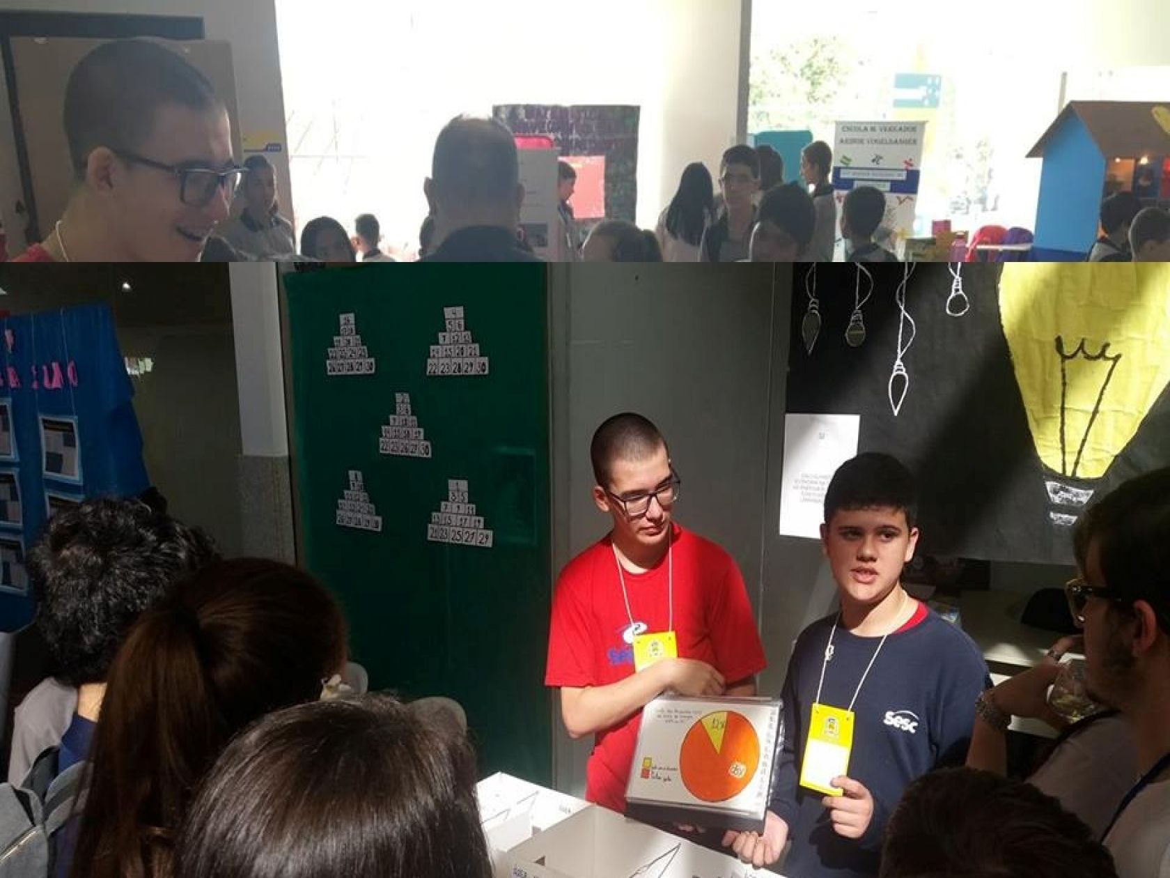 Durante a feira, o participantes do Clube de Ciências do Sesc em Joinville, prestigiaram os colegas e tiveram a oportunidade conhecer os trabalhos relacionados a matemática produzidos por alunos da Educação Infantil, Ensino Fundamental e Médio de escolas da região e se aproximar do mundo das ideias, da pesquisa e da ciência. “Foi muito divertido, interativo e educativo”, falou Arthur de França que assistiu a apresentação de pelo menos cinco projetos expostos sobre temas variados como geometria molecular, planejamento familiar, “pirâmides mágicas” – geometria das pirâmides, matemática nos truques com cartas e a exposição dos robôs que participam de duelos.
