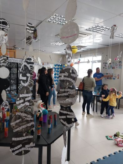 Os espaços ambientados com o tema, transportaram os presentes para esse universo de conhecimento. Através dessa vivência, foi possível uma melhor compreensão de como foi o percurso investigativo e dos resultados do processo de ensino-aprendizagem. Os pais prestigiaram e se envolveram com as vivências de rotina das crianças, assistiram a apresentação e visualizaram as produções dos estudantes.