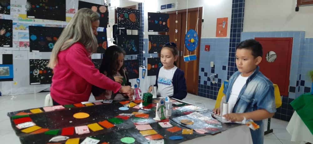 O tema “Astronomia e Natureza” ganhou abordagens variadas nos projetos, em consonância com a faixa etária e interesse de cada turma. As crianças aprenderam sobre os planetas, as estrelas, o sol, as estações do ano, o calendário, as fases da lua. Construíram foguetes e naves espaciais, com materiais reciclados. E também aprofundaram assuntos científicos, conforme o nível de ensino.