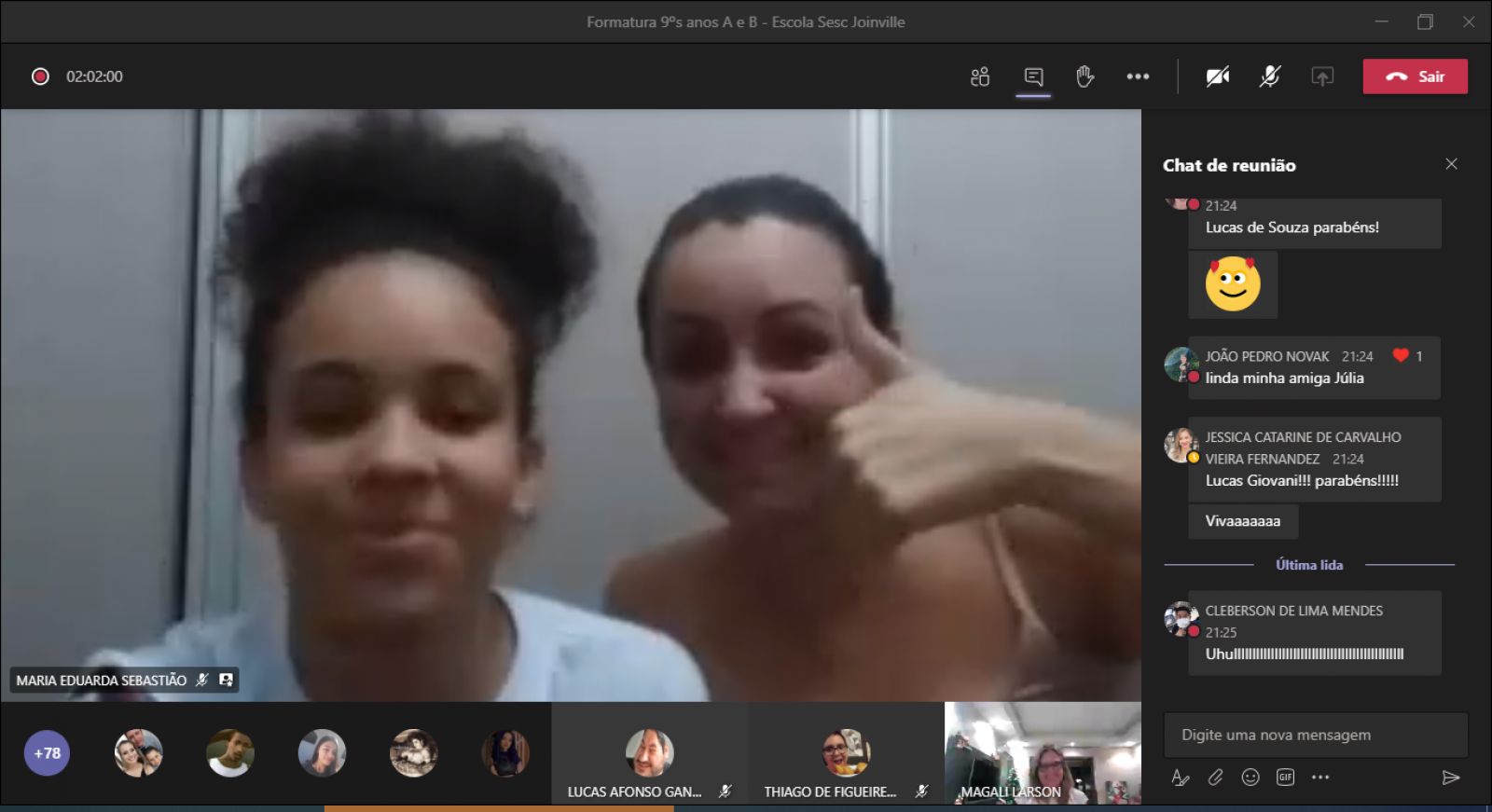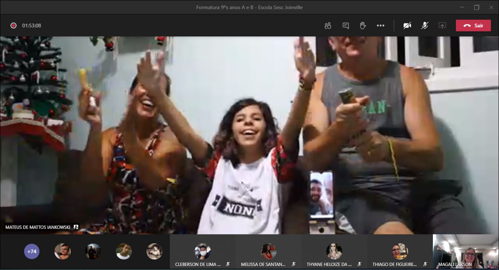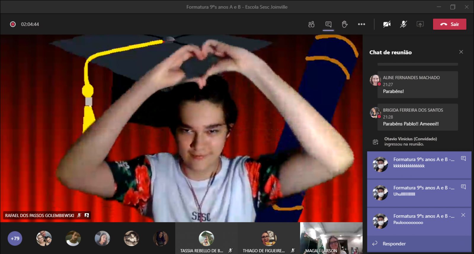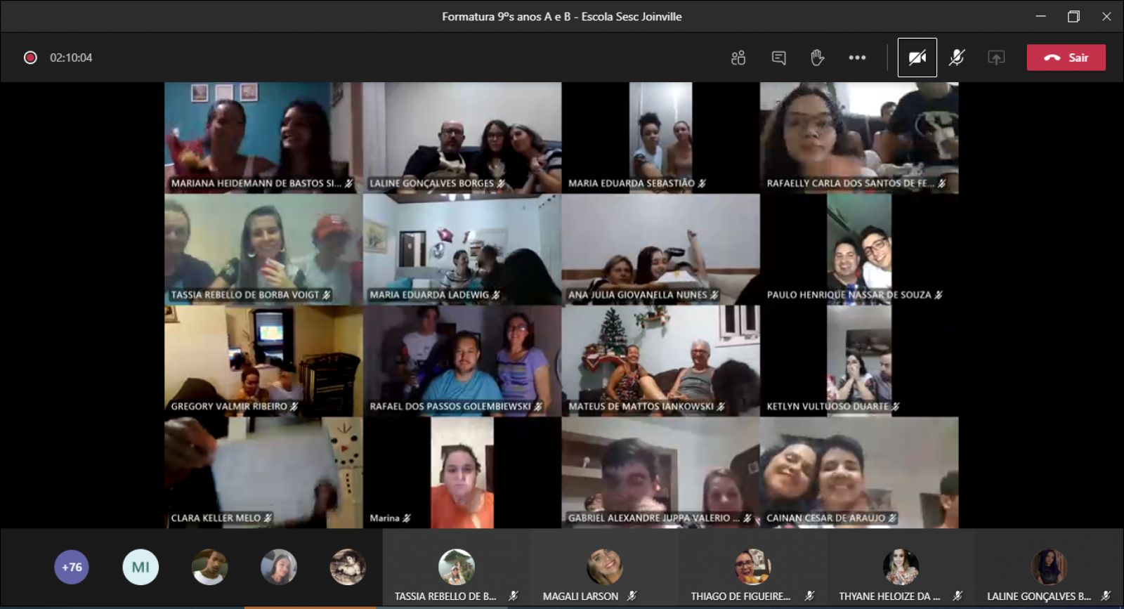 Fechamos essa etapa com um sentimento de muita gratidão! Com certeza ficará marcado, não apenas por ter sido tudo diferente, mas pela diferença que cada um de vocês fez!", Gissele Werner Lucindo, mãe de aluno da Escola Sesc Itajaí.