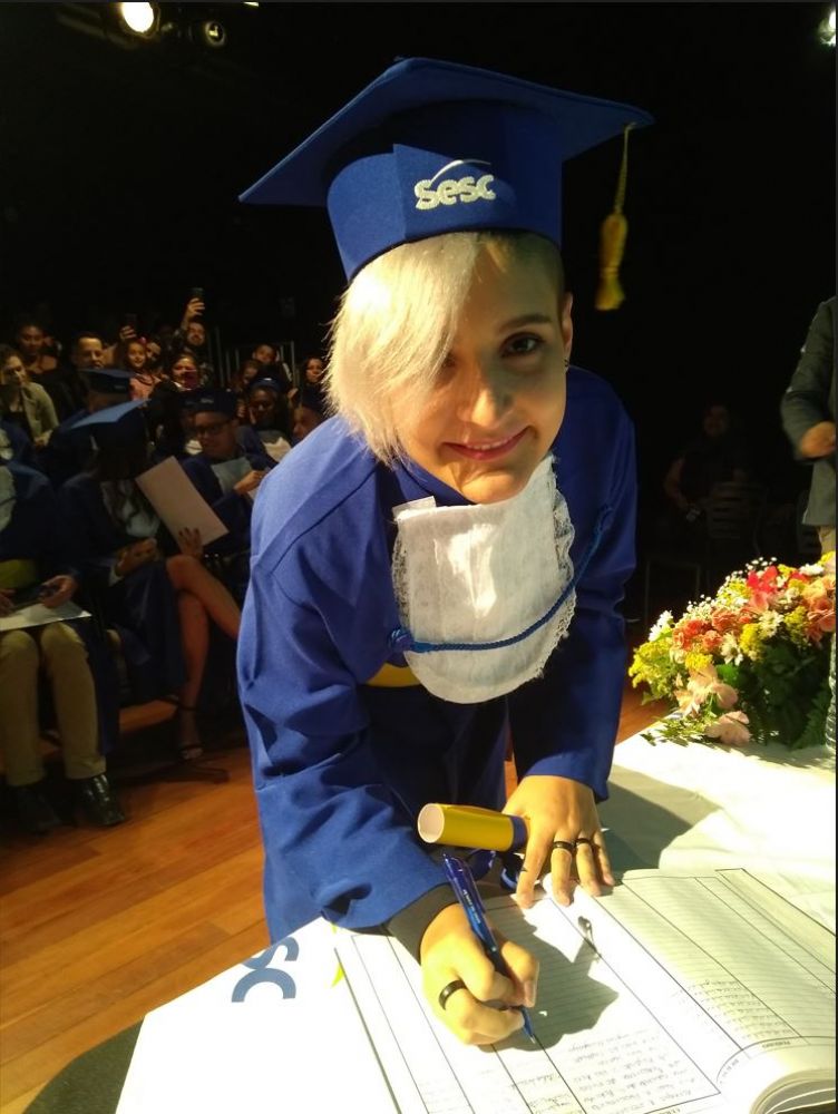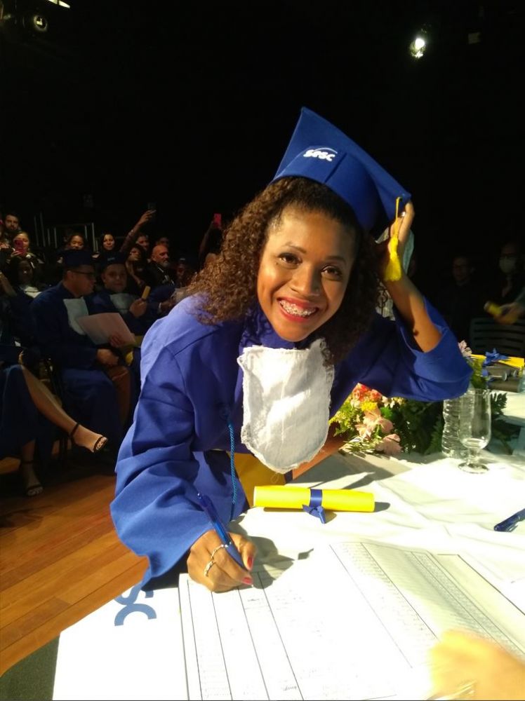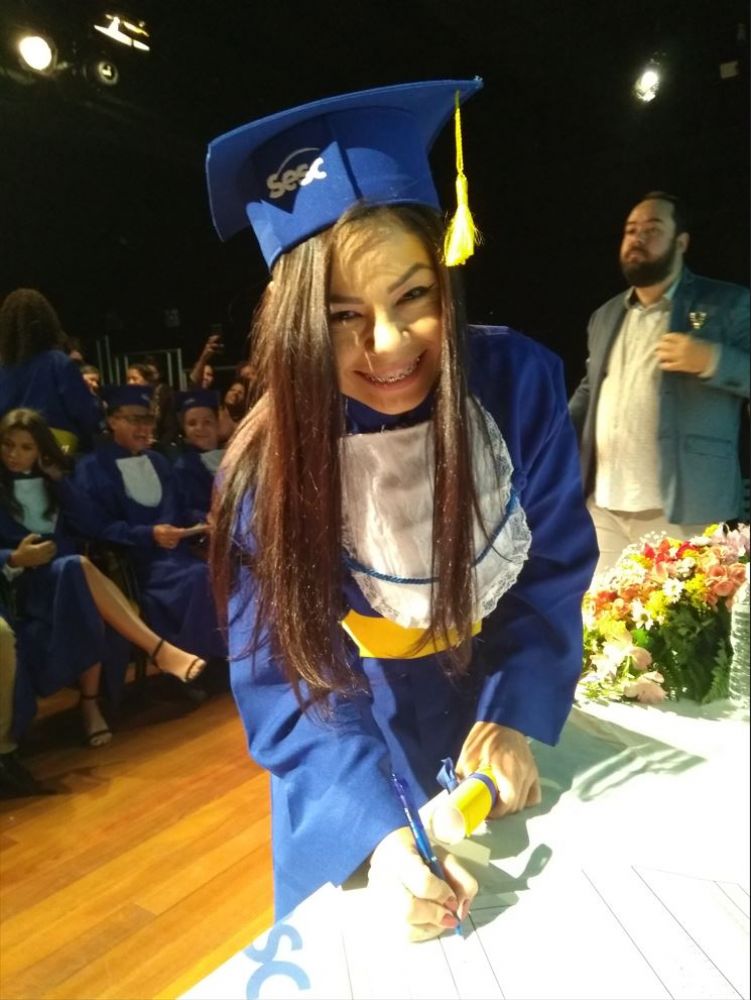 Ela é a alegria dos colegas, que viveram parte dessa jornada em busca do certificado do Ensino Médio de forma remota por causa da pandemia. A experiência de vida dessa jovem senhora e as opiniões e conselhos são respeitados. Ganhou o carinho de todos e não poupa esforços para ajudar a turma sempre que pode. Está cheia de planos: vai fazer um curso para atuar como auxiliar administrativo e seguir com a habitual alegria e coragem. “Sou como uma fênix que virou cinzas e renasceu ainda mais brilhante”, celebra.