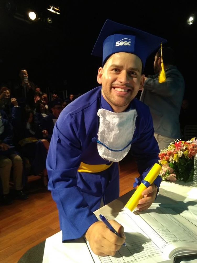 “Muito mais que a entrega de um diploma, a colação de grau representou para esses estudantes o símbolo de uma conquista”, afirma Alisson Feuser, professor de Língua Portuguesa da EJA Sesc Prainha.