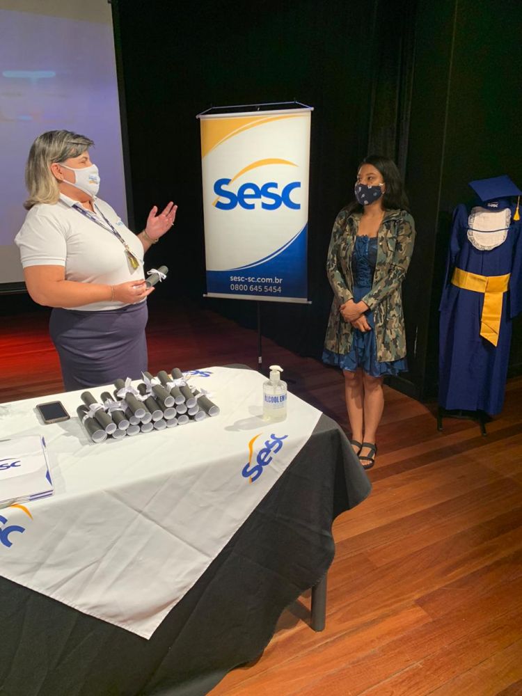 Nesta quinta-feira, dia 17 de dezembro, o Sesc Prainha realizou uma cerimônia individual de formatura da Educação de Jovens e Adultos (EJA) – Ensino Médio, para celebrar a conclusão desta importante etapa da vida de 37 alunos. Estudantes que já têm em suas trajetórias, histórias de superação, tiveram que enfrentar também obstáculos relacionados à pandemia para conquistar o certificado.